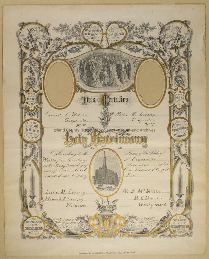 Marriage Certificate: Earnest Watson - Nellie Lovejoy; 1886
