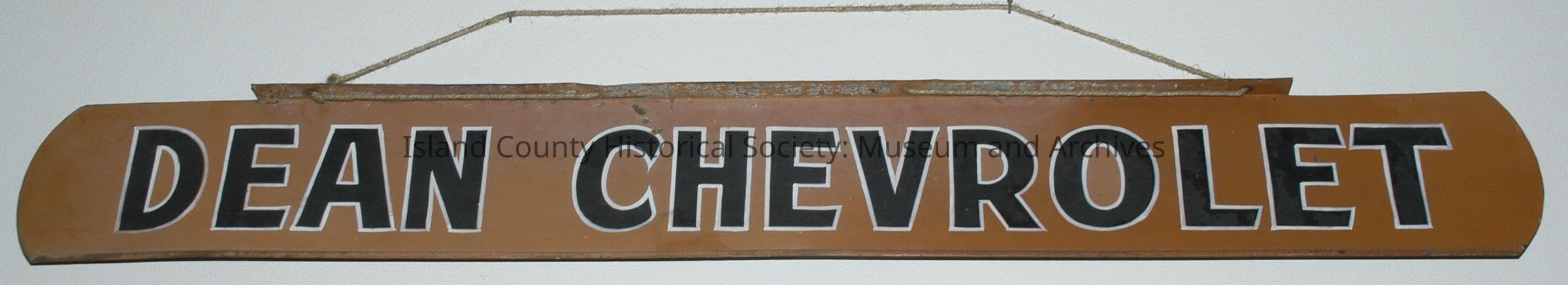 Metal sign "Dean Chevrolet". Advertisment for Dean Chevrolet.