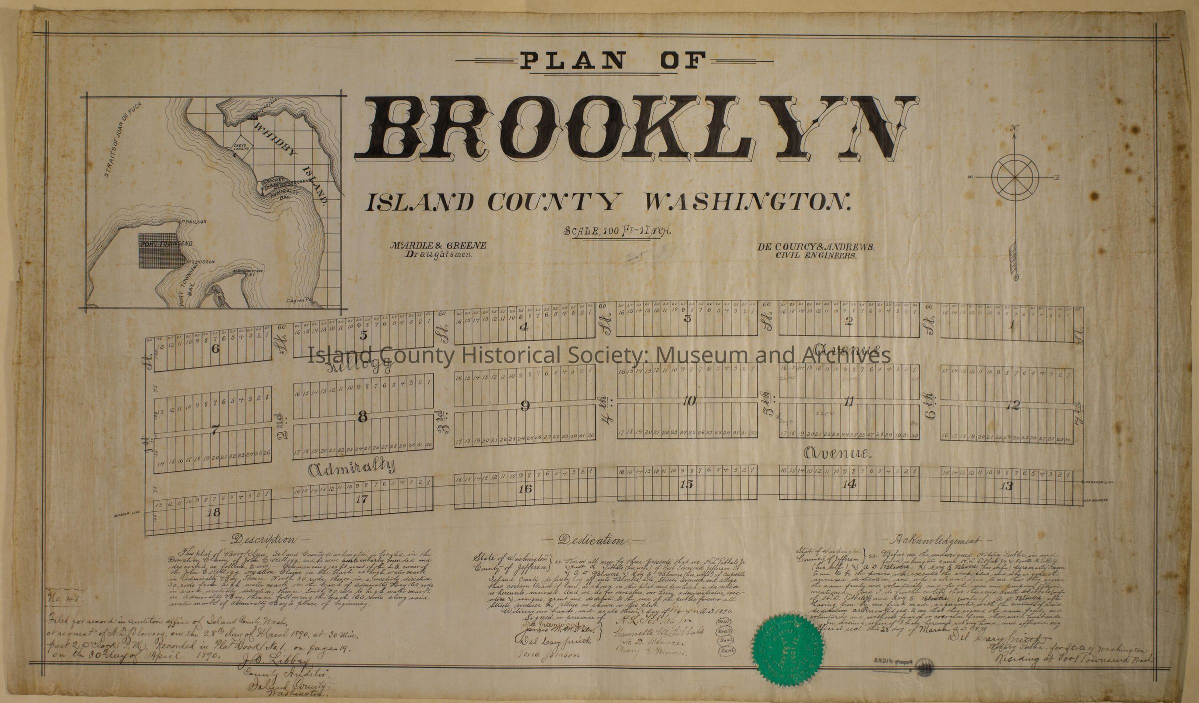 Plan of Brooklyn tract map, Coupeville. April 30, 1890