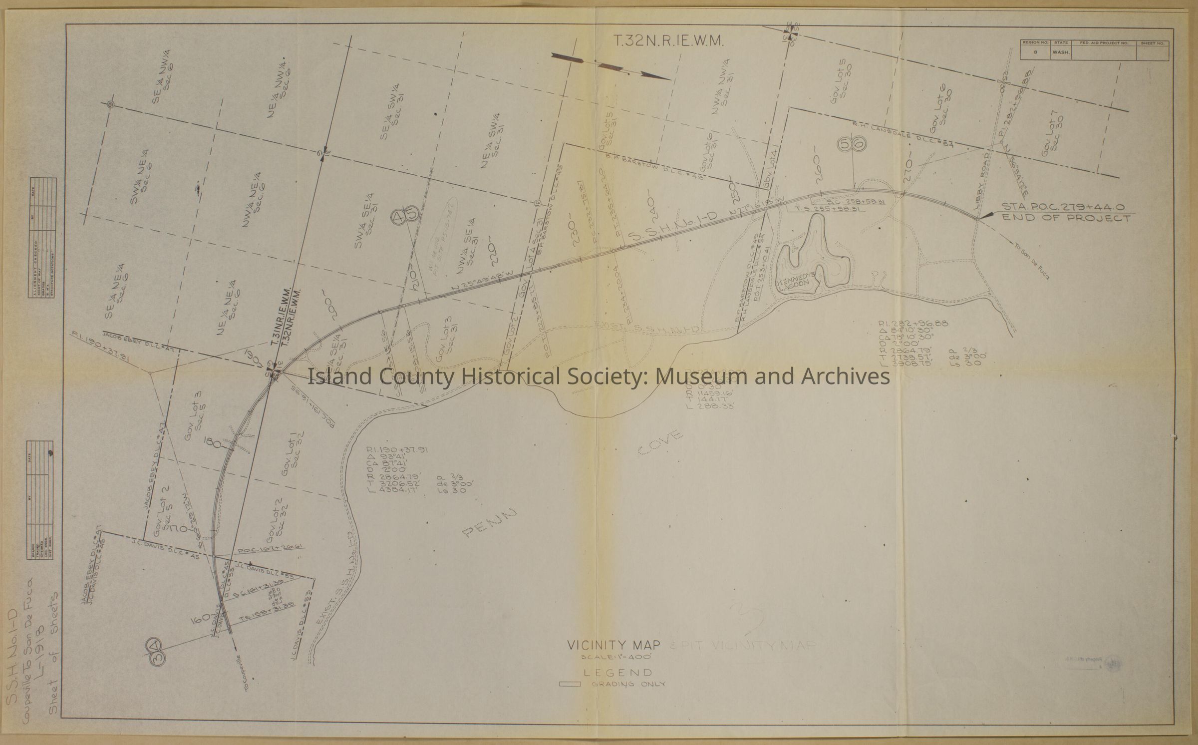 Coupeville to San de Fuca map with state roads and highways. T.32N.R.IE.W.M