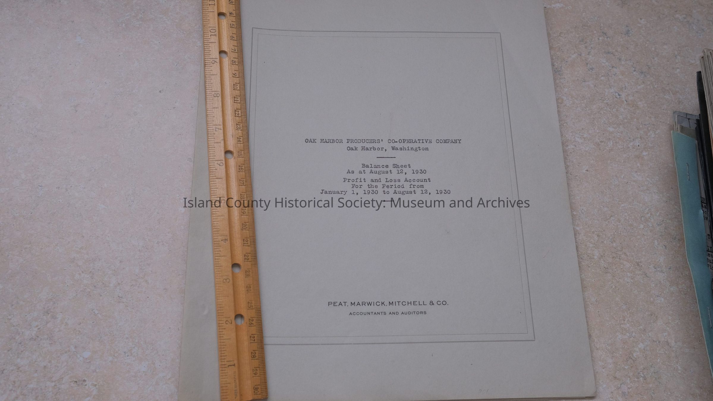 Audit Statement, Oak Harbor Producers' Coop Co., Oak Harbor, Washington, January 1, 1930 to August 12, 1930. 2015.095.043a 22.1930Lexicon
