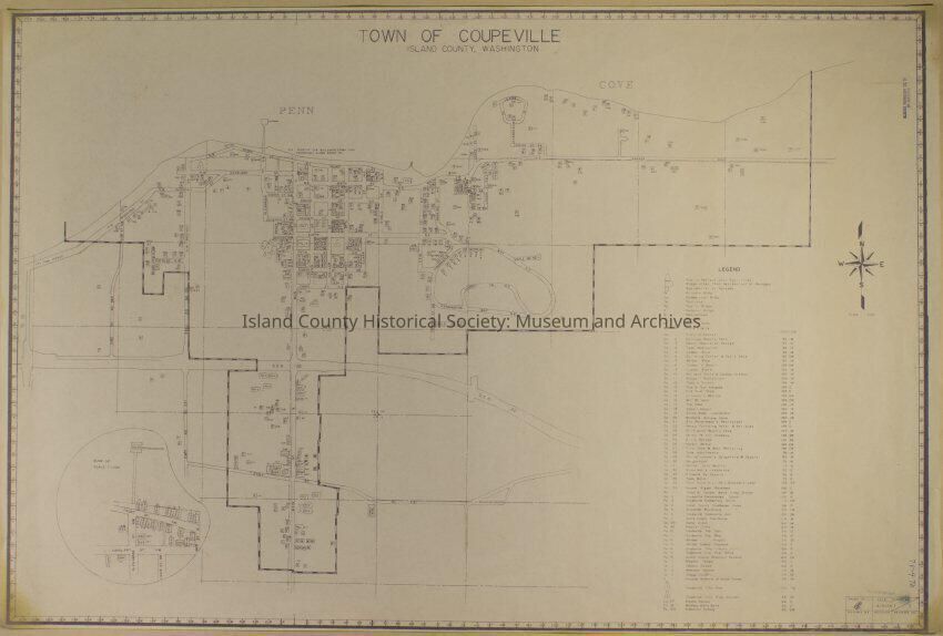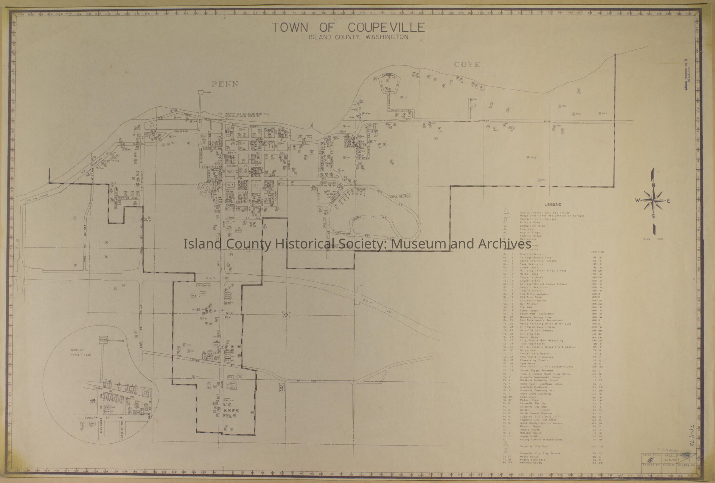 Town of Coupeville Map with streets and key buildings and residences - 08/31/73