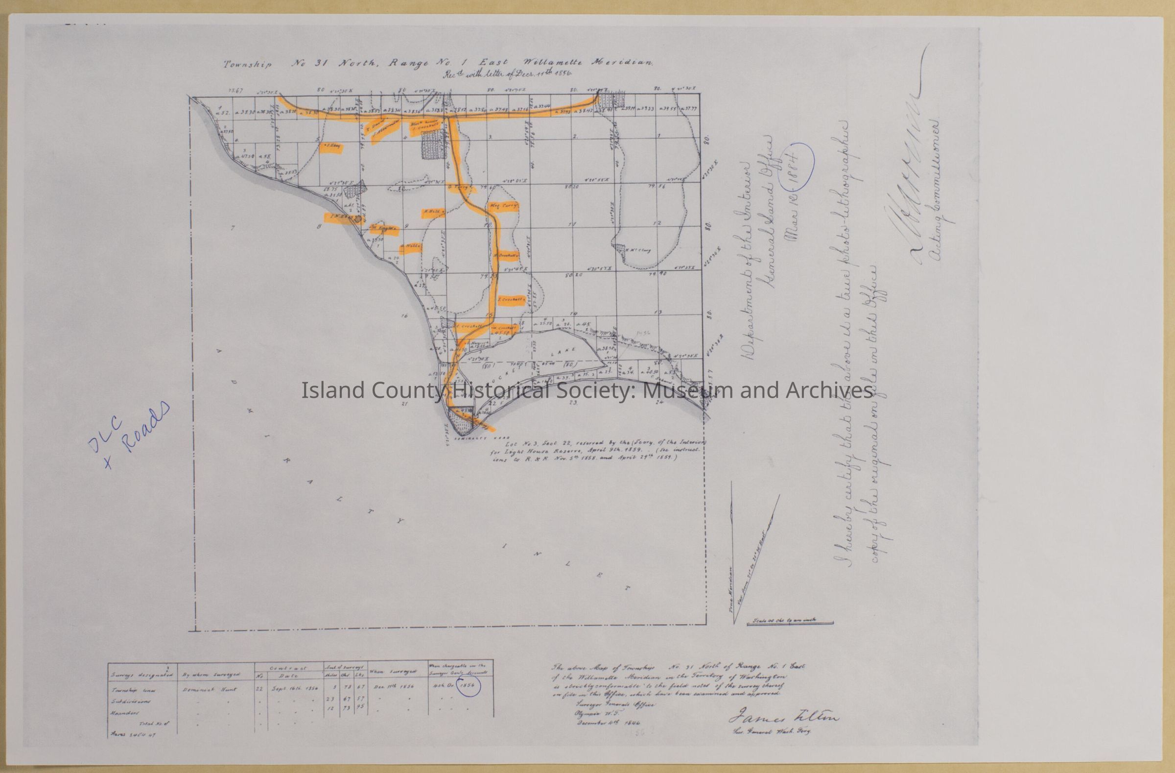 Map showing Township No 31, North Range No. 1 East Willamette Meridian; 1856