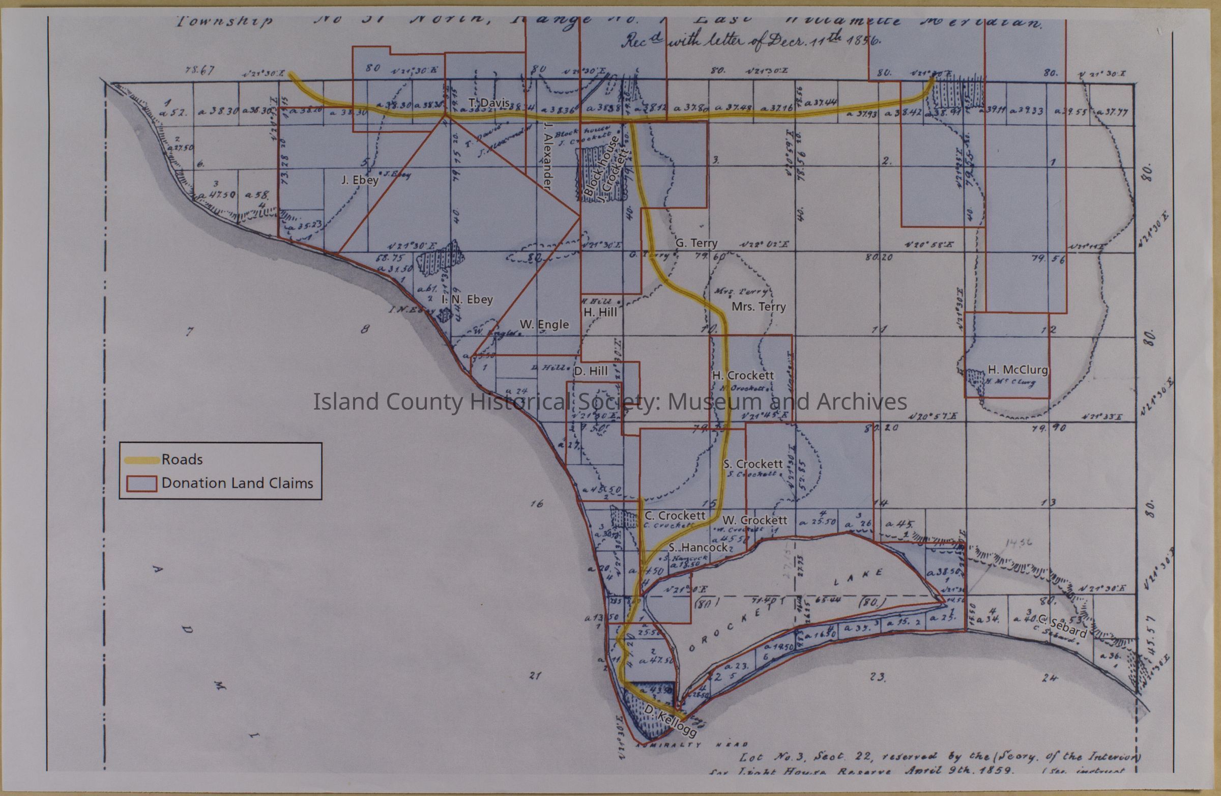 Donation Land Claims, shows Crockett Lake area