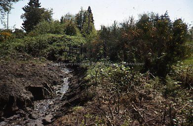Construction project in Langley for the federally funded senior housing project. Slide showing down ditch from 3rd. to 18'' culvert.