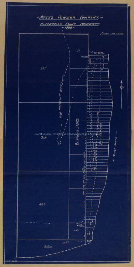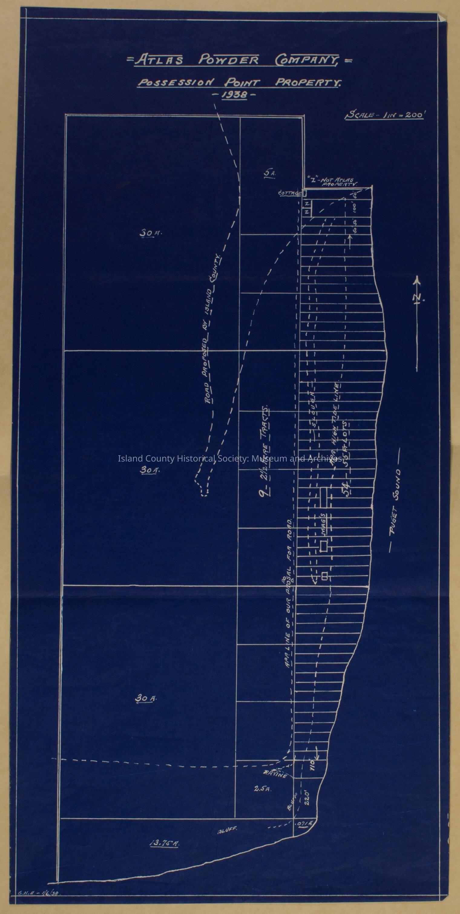 Tract map - blueprint of the Atlas Powder Company Possession Point Property. 1938