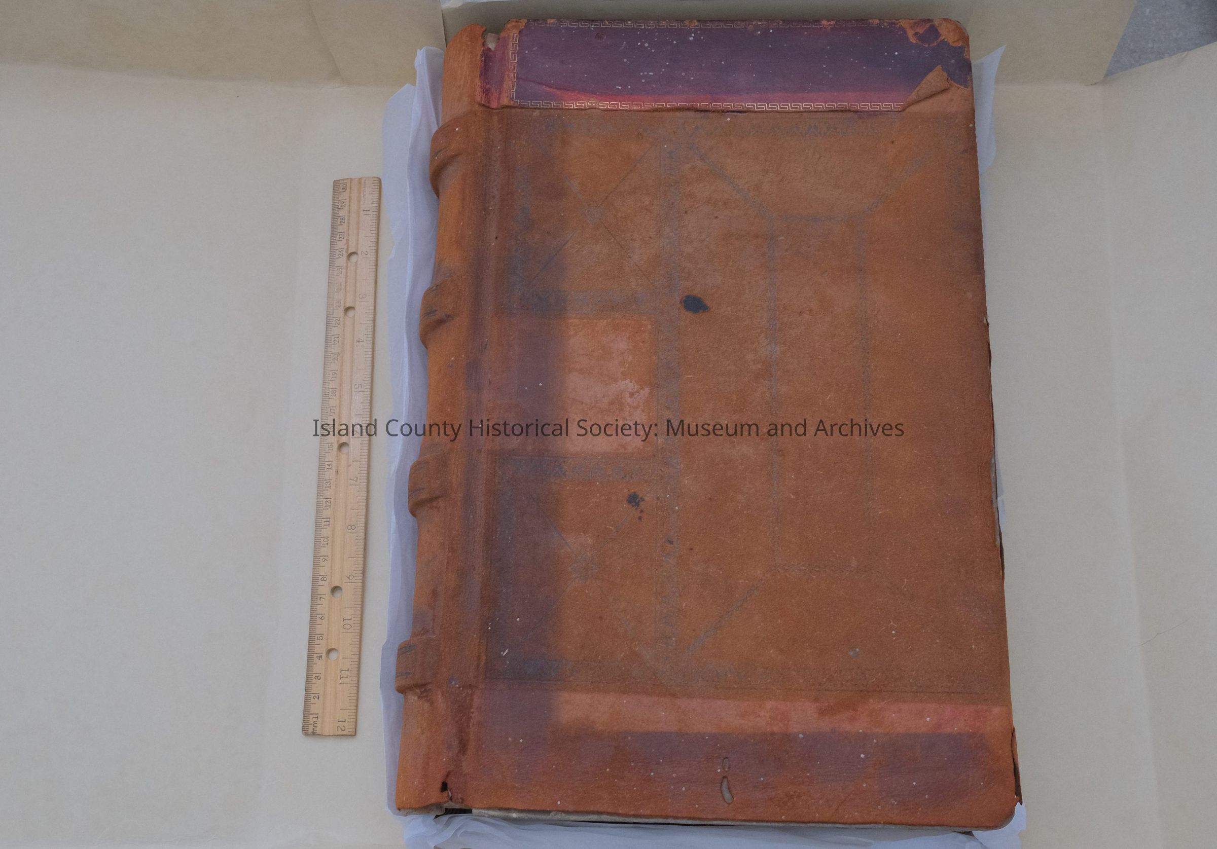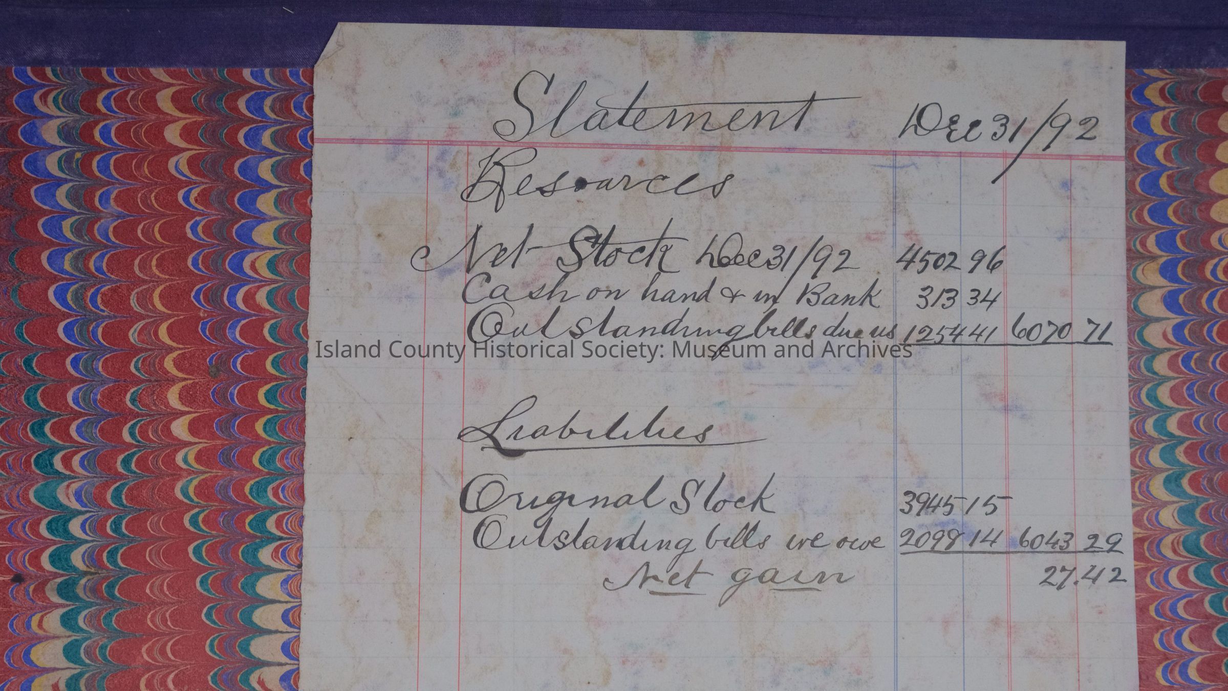 Ledger, store, dates from 1892-1894 Account book of Calhoun & Sherwood Grocery (where tavern is) 1890. (cover red-brown, red on top, missing from around bottom, 11" W x 15.75" L x 2.75" H) Old: #435 New: 2015.095.003 22.1892