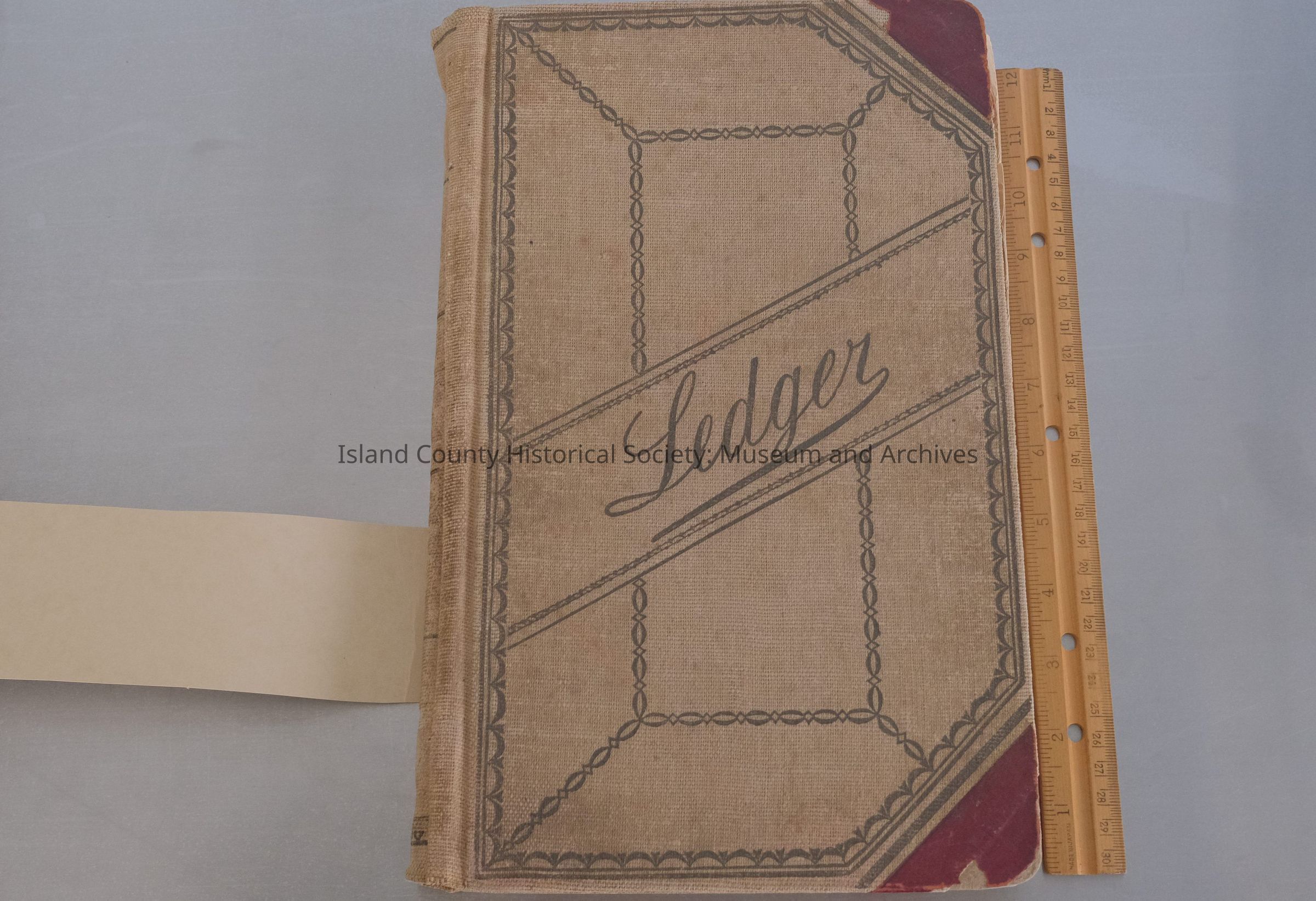 Ledger, dated 1900-1928 Note at page 41: Ledger found in the attic of Kranny's Corner Langley. (cover light brown, red corners, Ledger on front, 8.25" W x 13" L x 1"H) (rebind) 82-10-27 22.1900