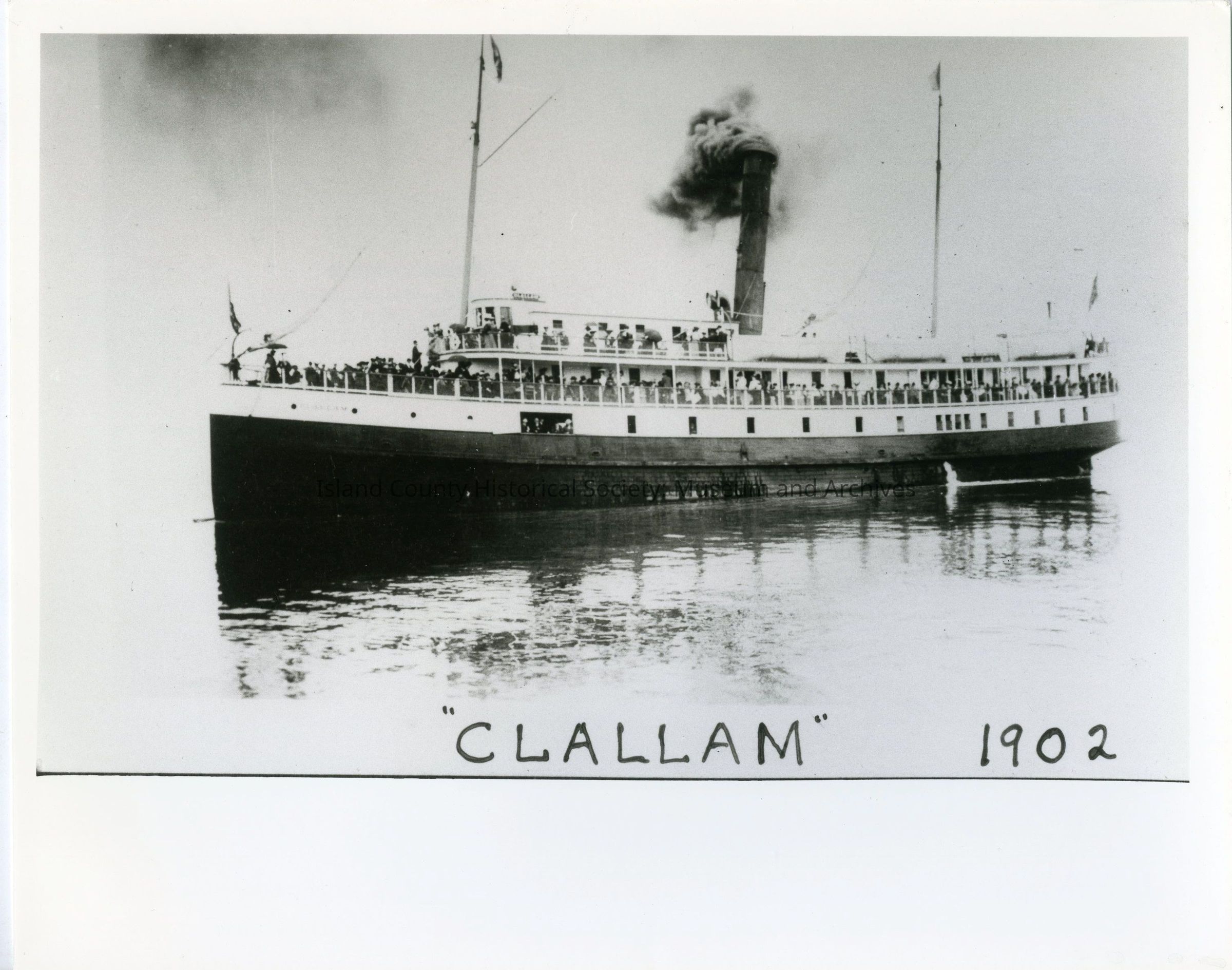 Photograph of the passenger steamer "Clallam", c. 1902. The Clallam sank in 1904, resulting in 55 casualties.