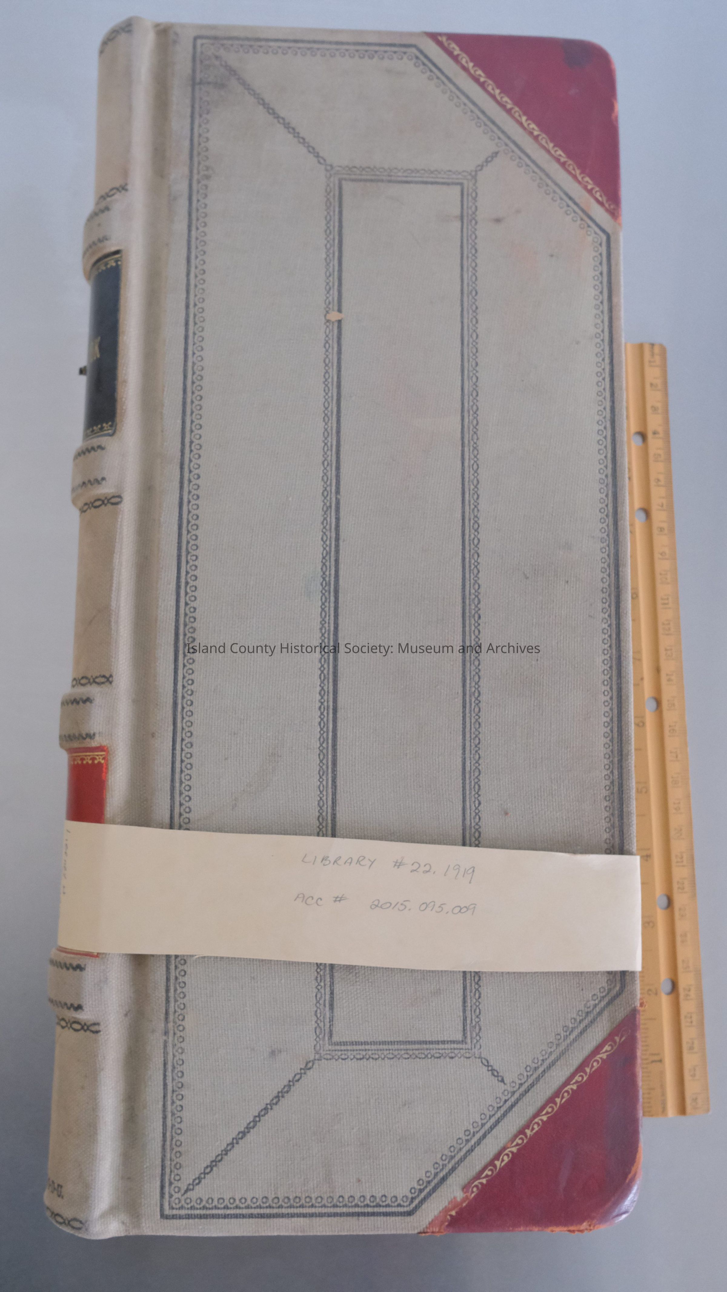 Ledger 1919-1921, Freight Received (cover light brown, red corners, Day Book on the spine, 7.75" W x 17"L x 1.75" H) 2015.095.009 22.1919
