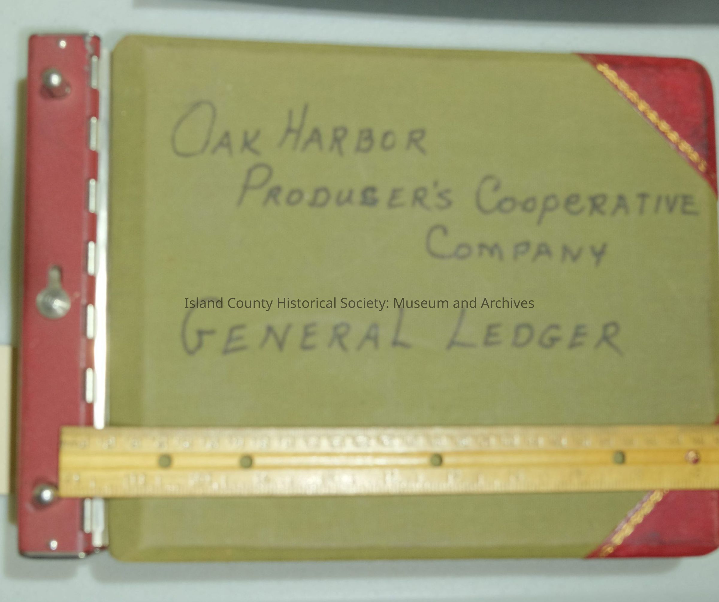 Ledger Oak Harbor Producers' Cooperative Company General Ledger 1928-1960 (Cover green, steel binder rods; 11.5"W x 8.5"L x 1.75"H) 2015.095.014 22.1928