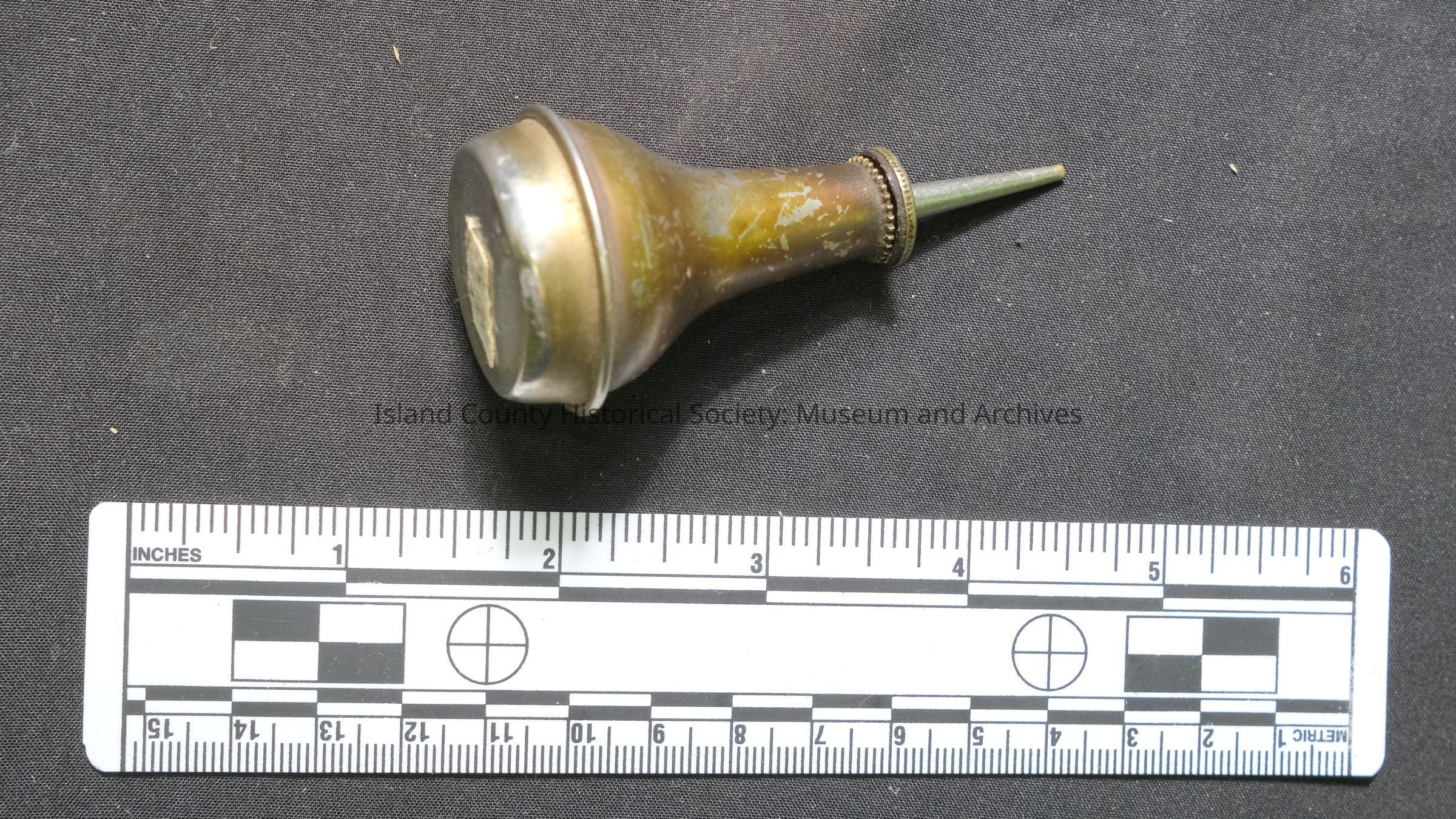 Sterling silver oilcan, dated Sep. 10, 1895 - Court House.