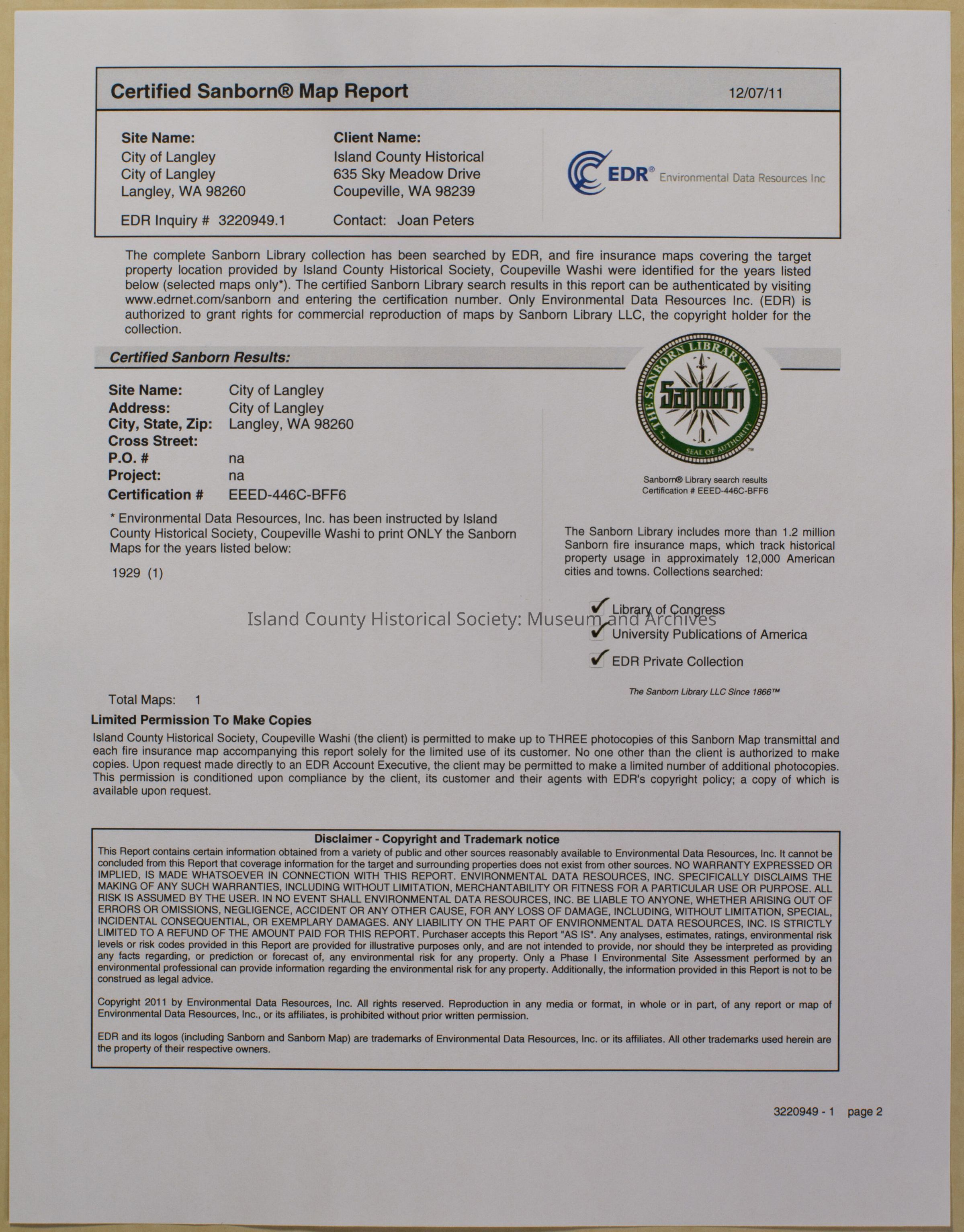 Sanborn City of Langley Map Report. 12/07/2011