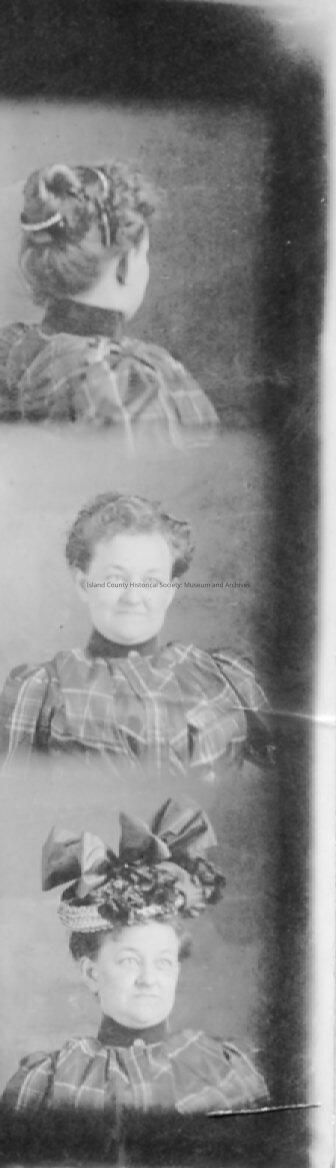 Mrs. Albert Kineth, called "P.K." Column of three small head shots, one front with hat, one front without hat, one from rear.