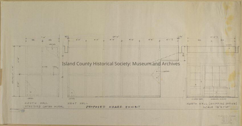 Architect Drawings of Proposed Wharf Exhibit Drawing of the South, West, and North walls Duplicate of 2008.017.006a