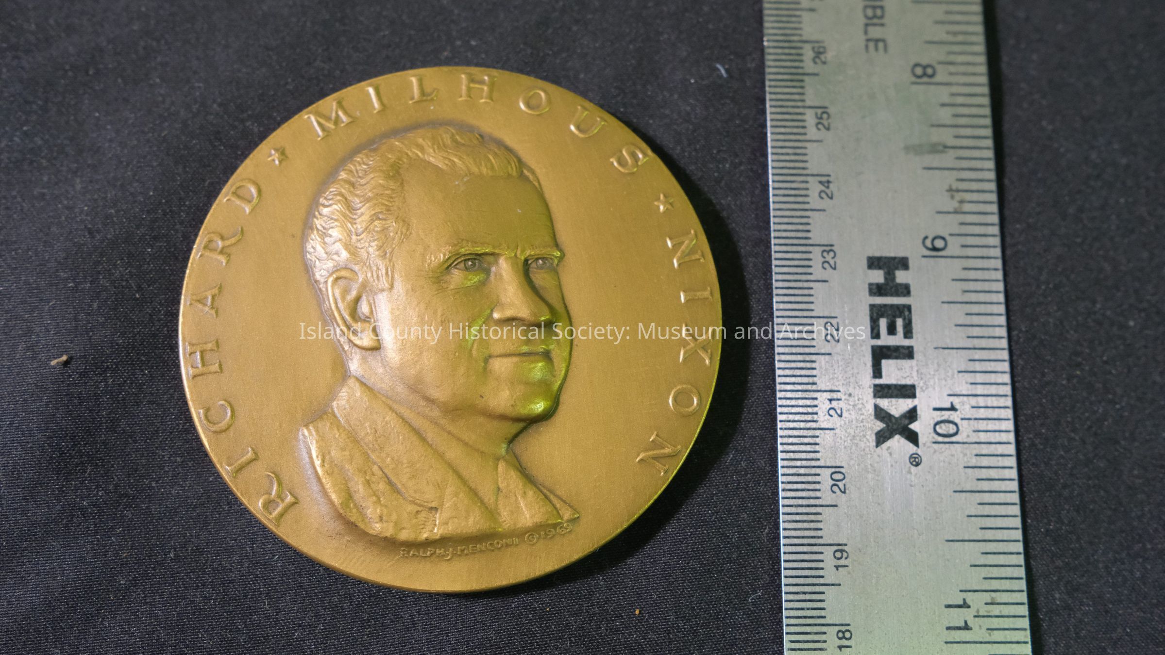 Bronze medallion of President Nixon.