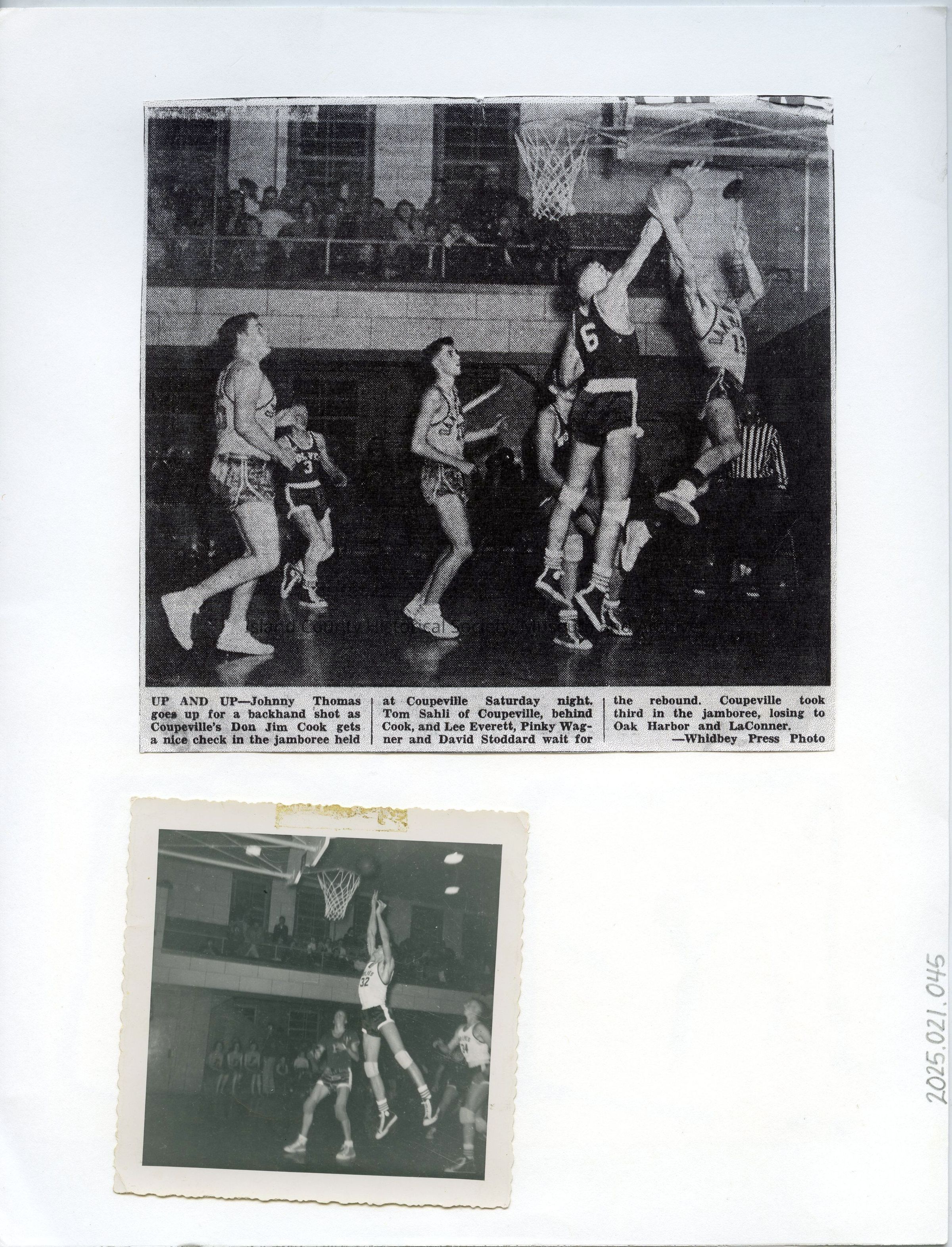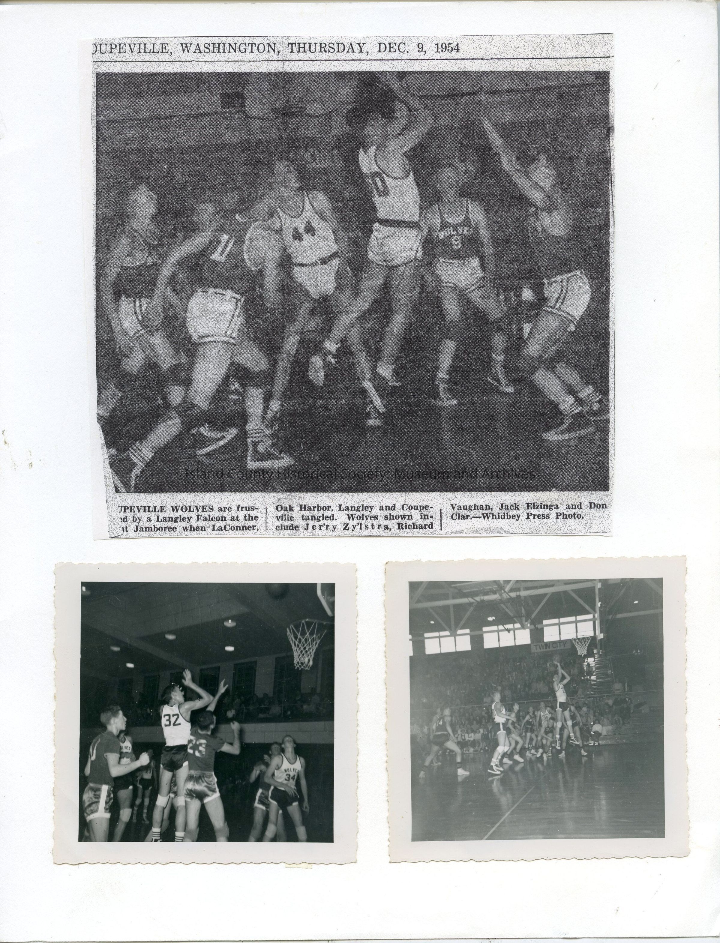 1954-1955 CHS Boys Basketball scrapbook page (front and back). Scrapbook compiled by Jimmie Jean Cook.