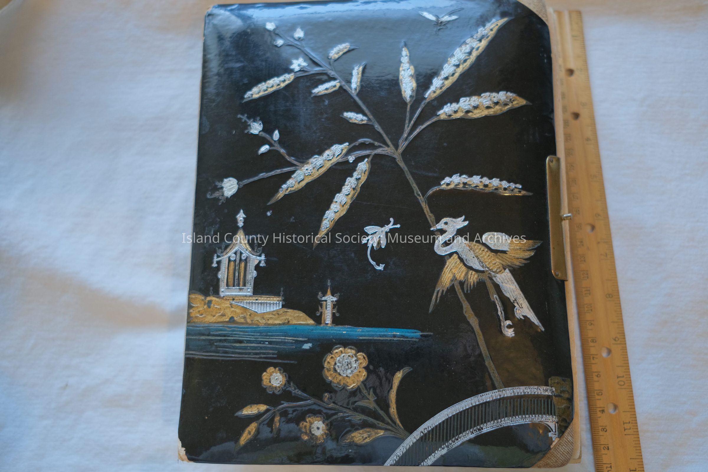 black lacquer photo album w/ white/gold detailing - Vera Hancock Dean