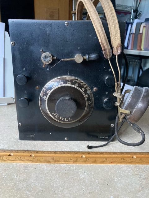 small "Jewel" model radio w/ headset in wooden box frame