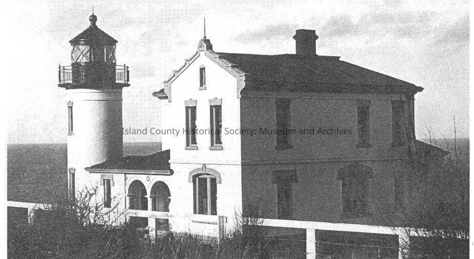 Postcard (2 copies): Lighthouse Centennial 1903-2003 "Closed for Business" c 1922 The sescond light station, newly constructed Admiralty Head Lighthouse, lasted only nineteen years before it was finally decommissioned in 1922.