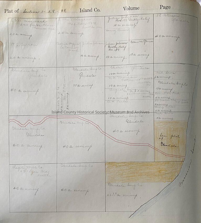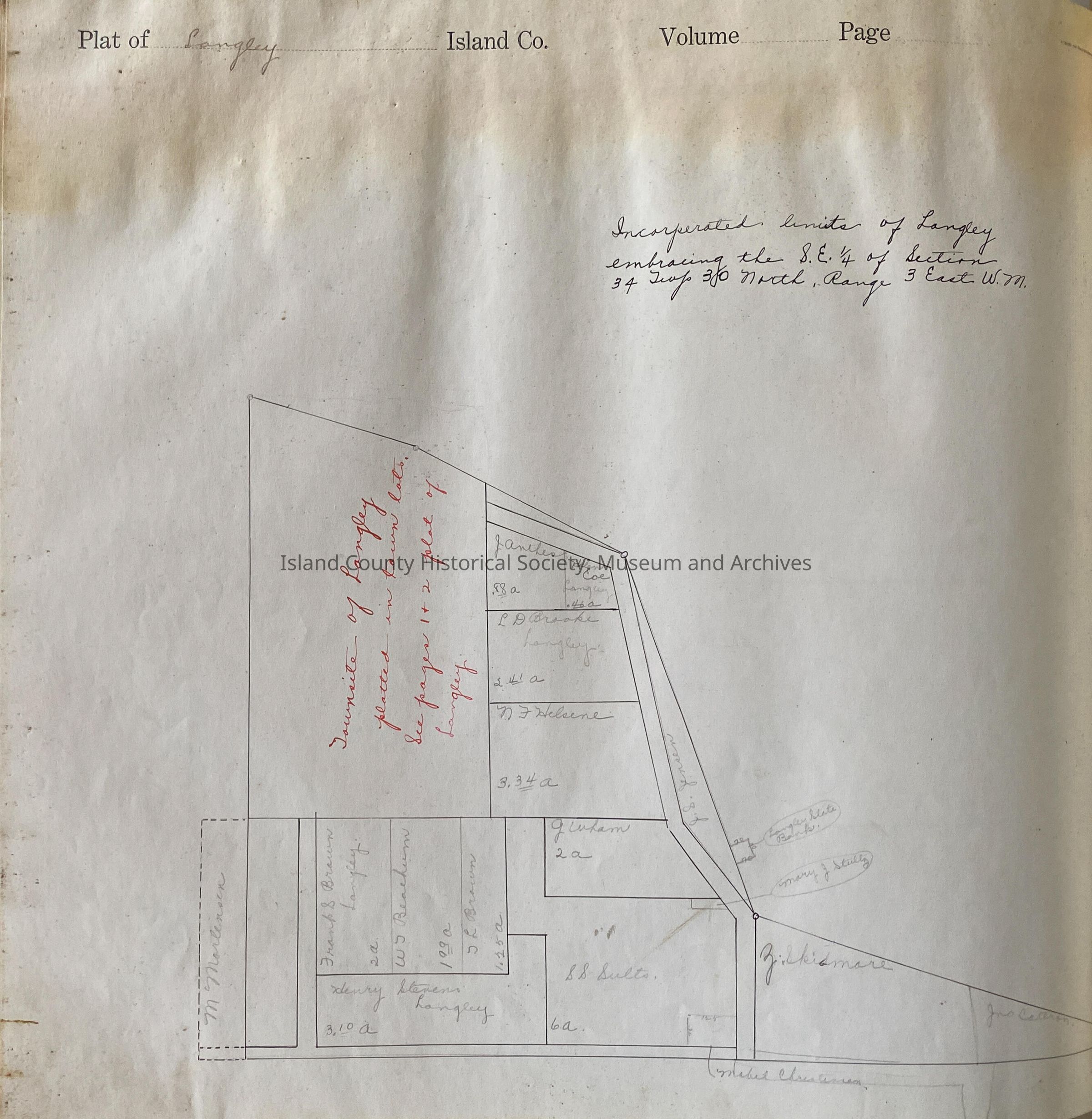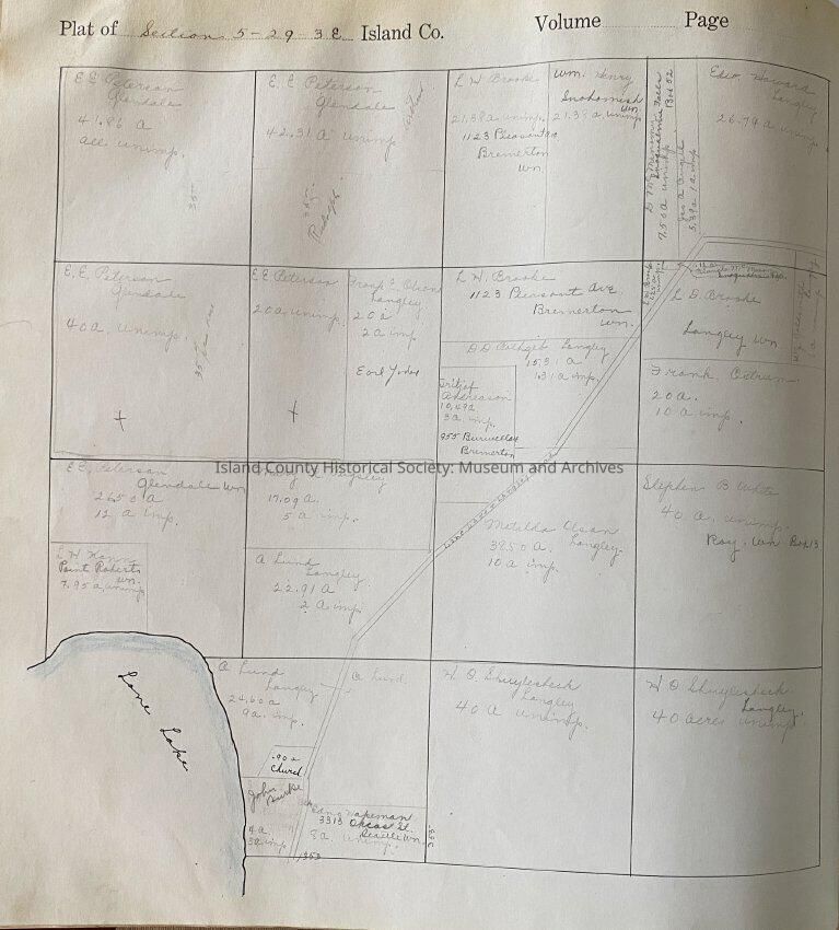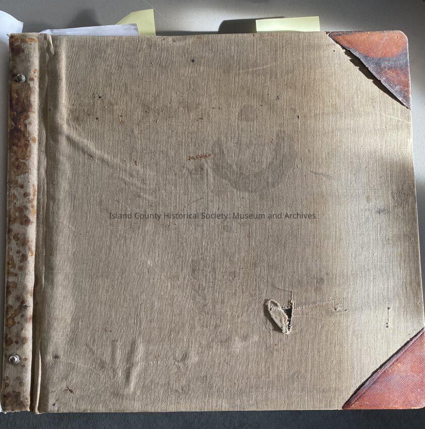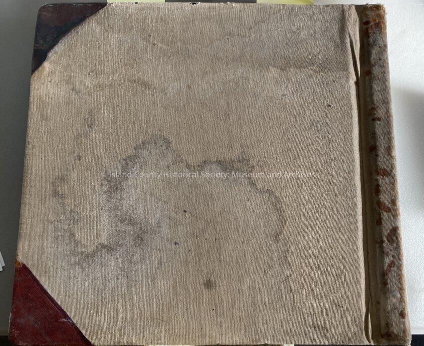 A brown fabric covered book with plat maps hand drawn inside. Phsyical copy was on loan and returned, digital copy for museum to archive.