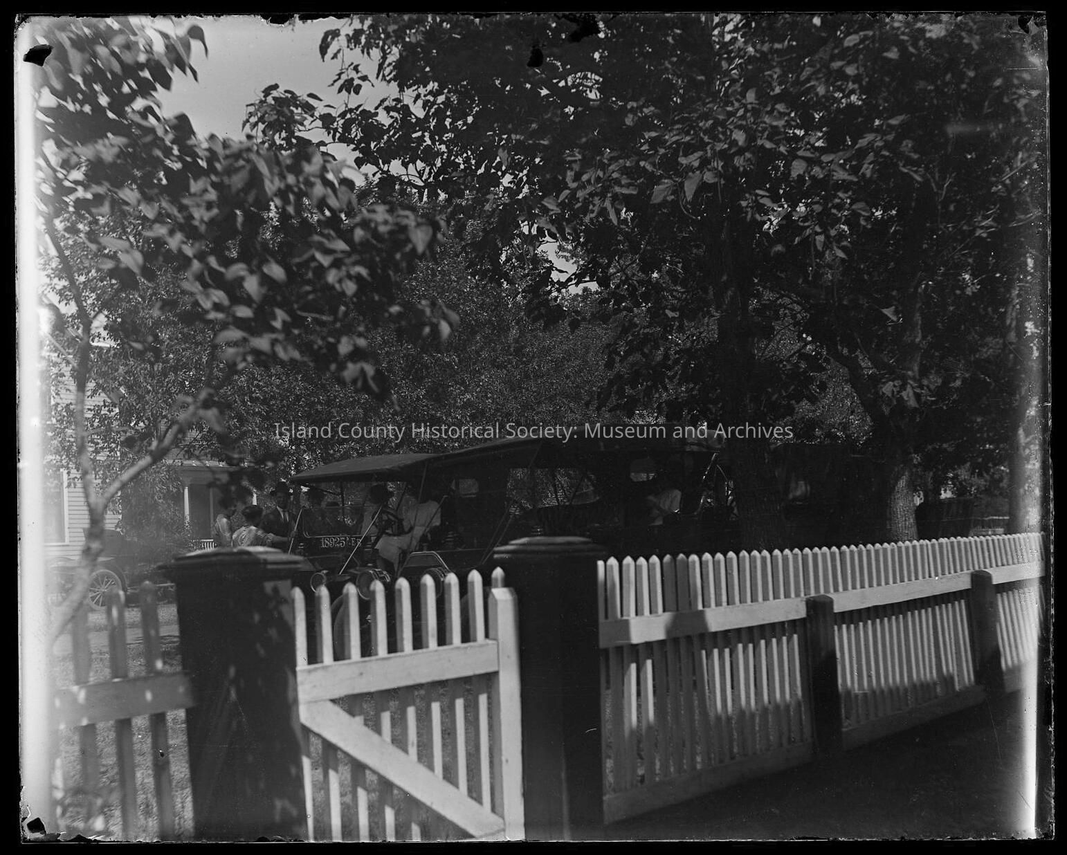Car outside fenced yard with group insideCollection