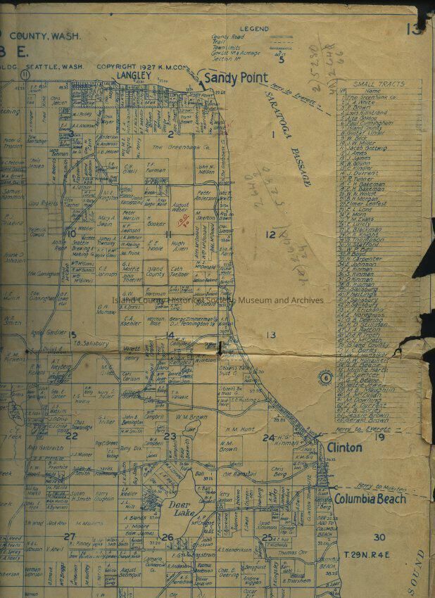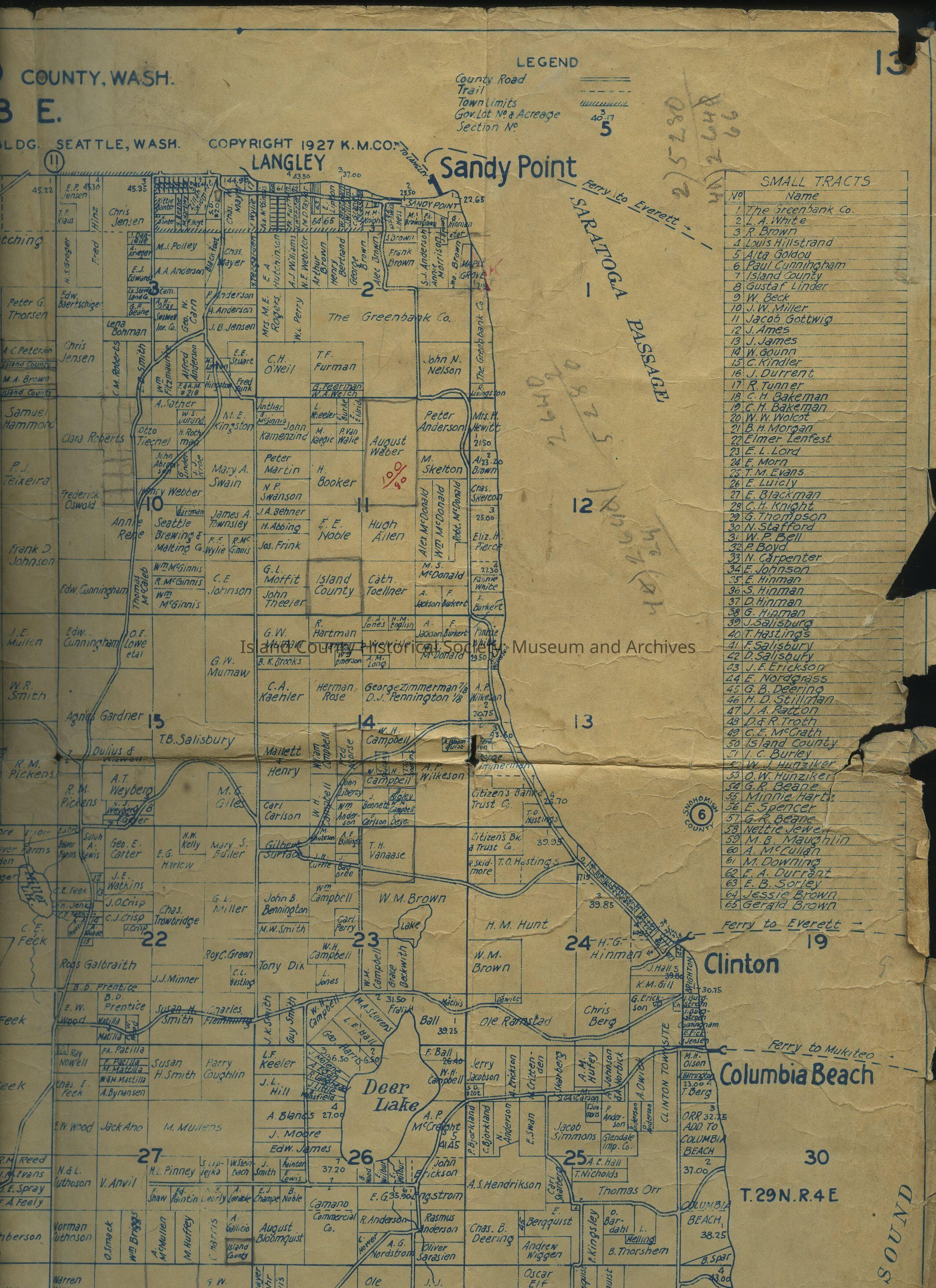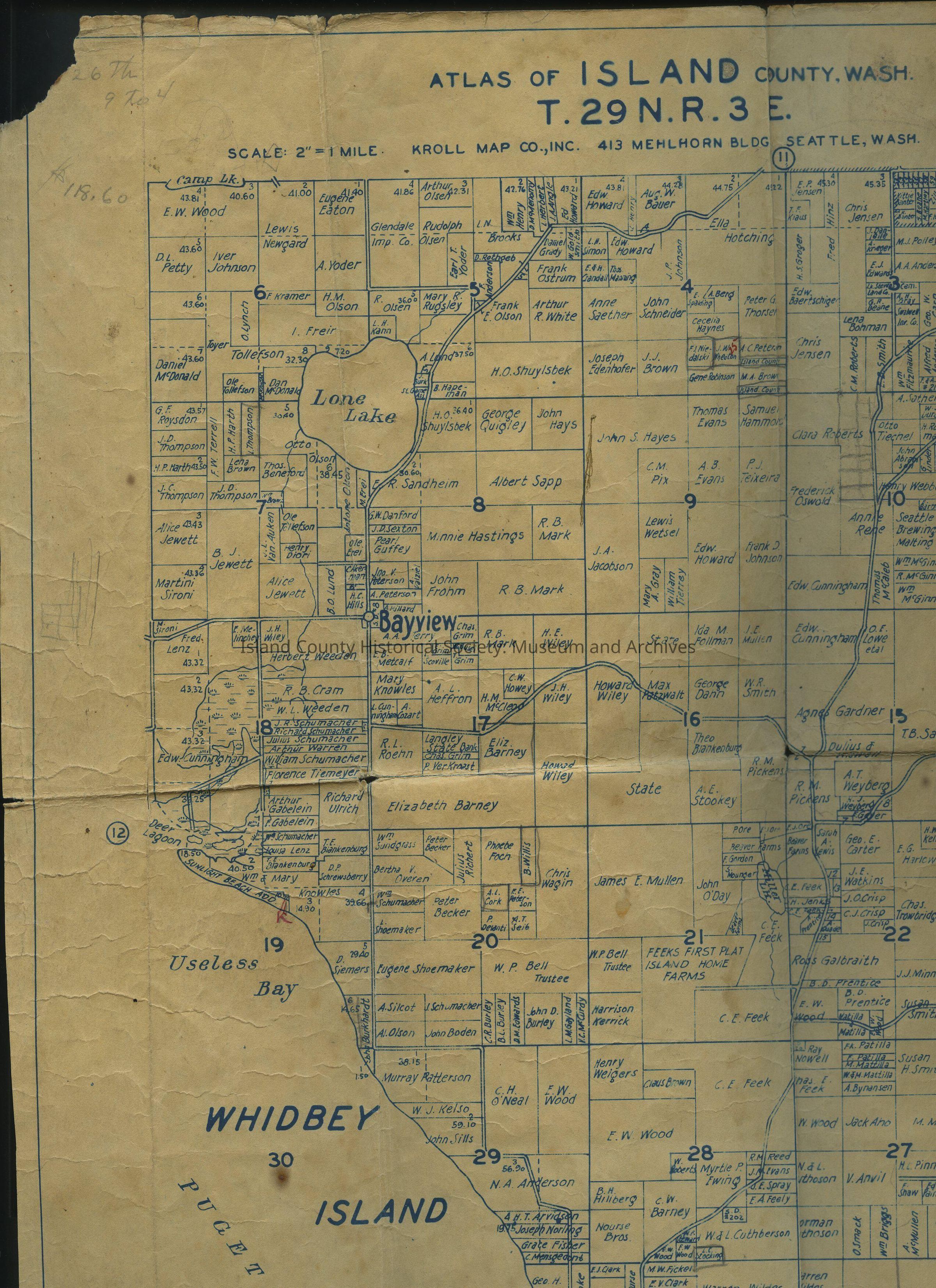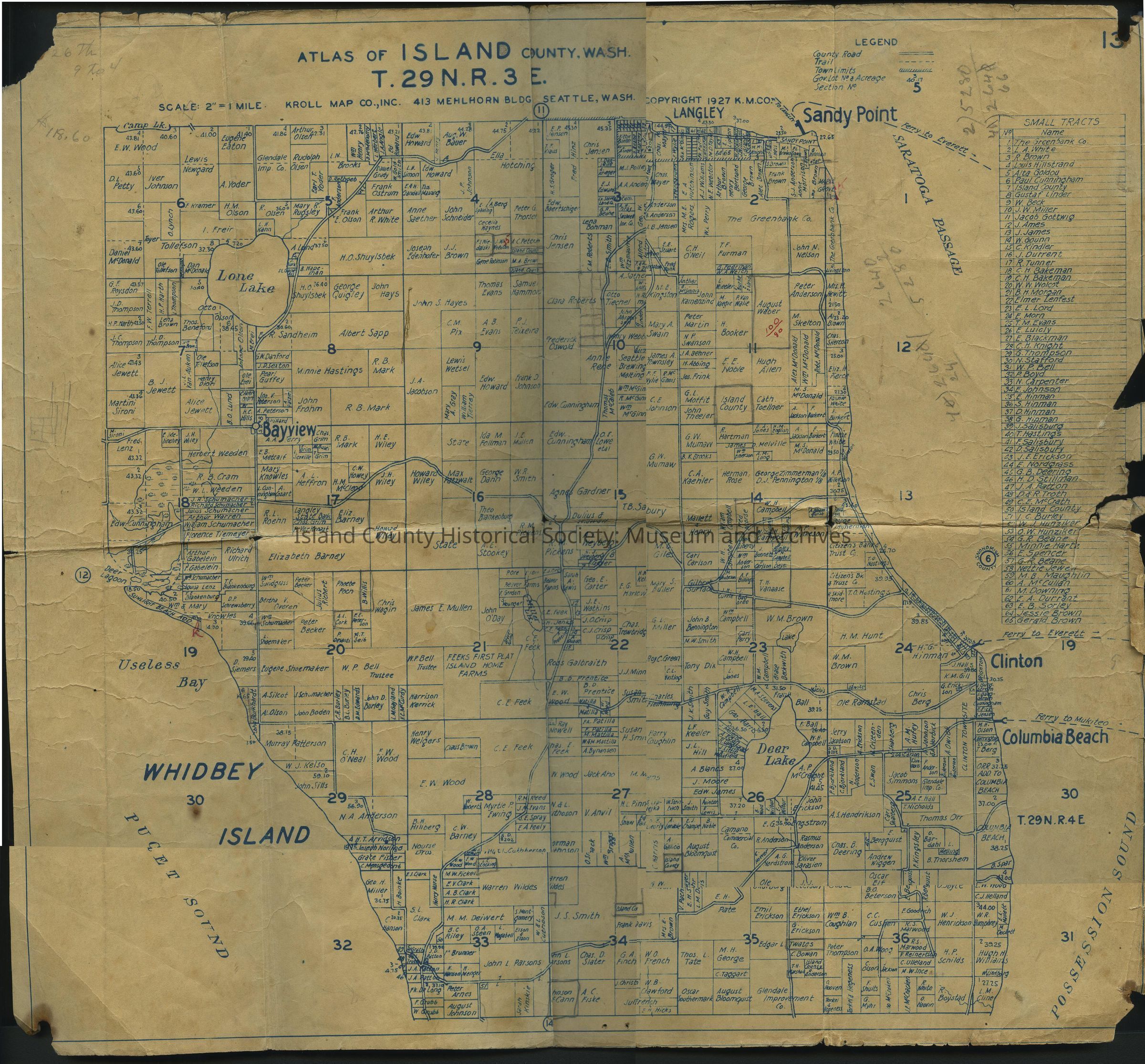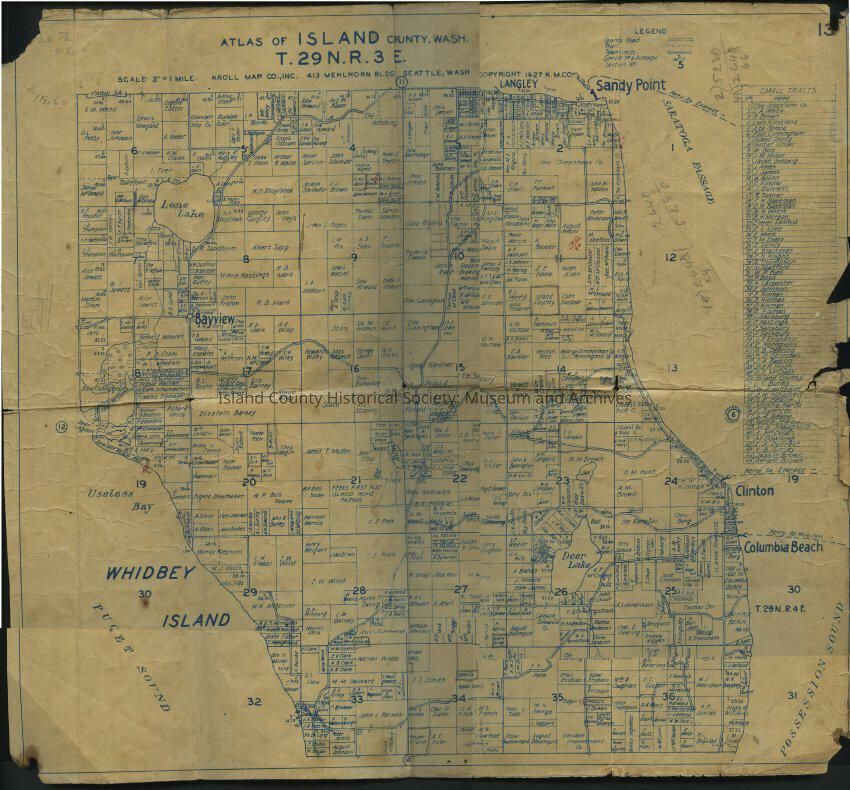 A plat map of the South end of Whidbey Island. Digital Scan Only.