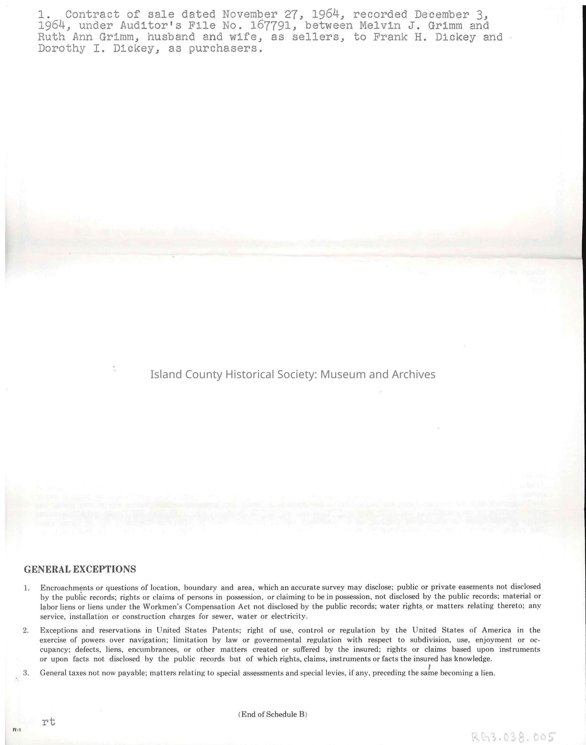 Title Policy - Frank and Dorothy DickeyEntry/Object ID