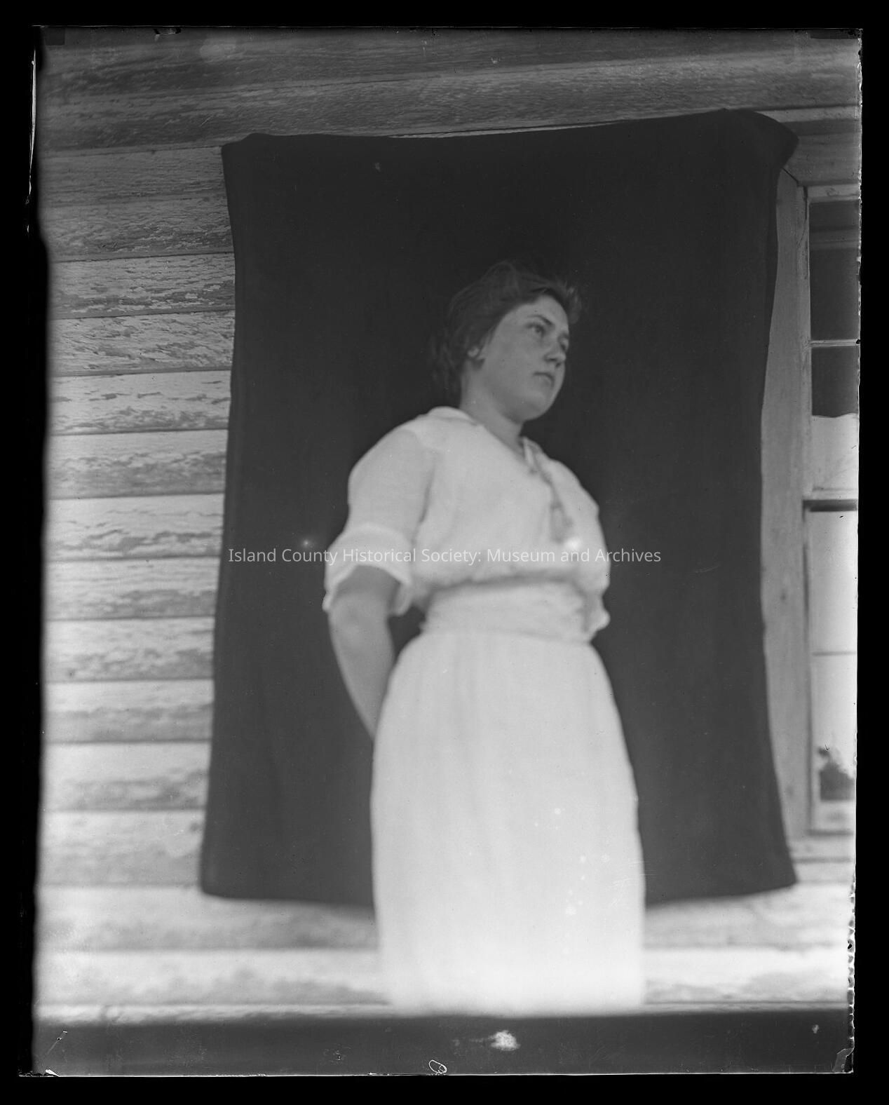 Unidentified woman posing infront of a black clothCollection