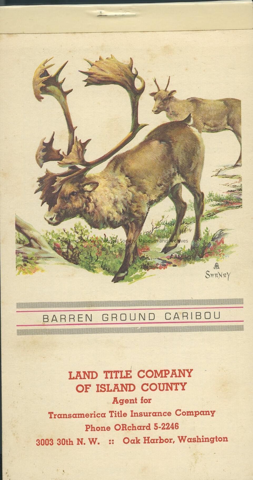 Land Title Company of Island County notepad.Barren Ground Caribou on front.