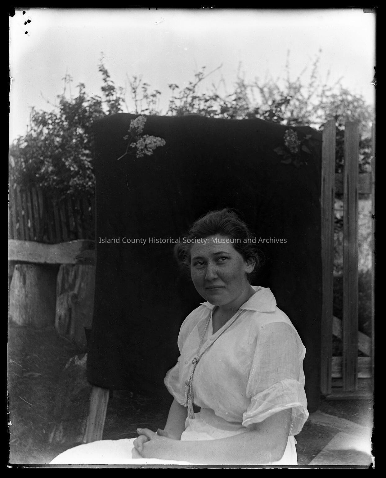 Woman posing infront of cloth in the gardenCollection