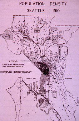 Photograph of a diagram showing Seattle's population density in 1910.Photograph Details