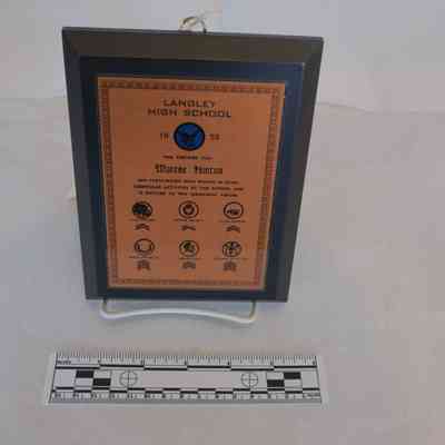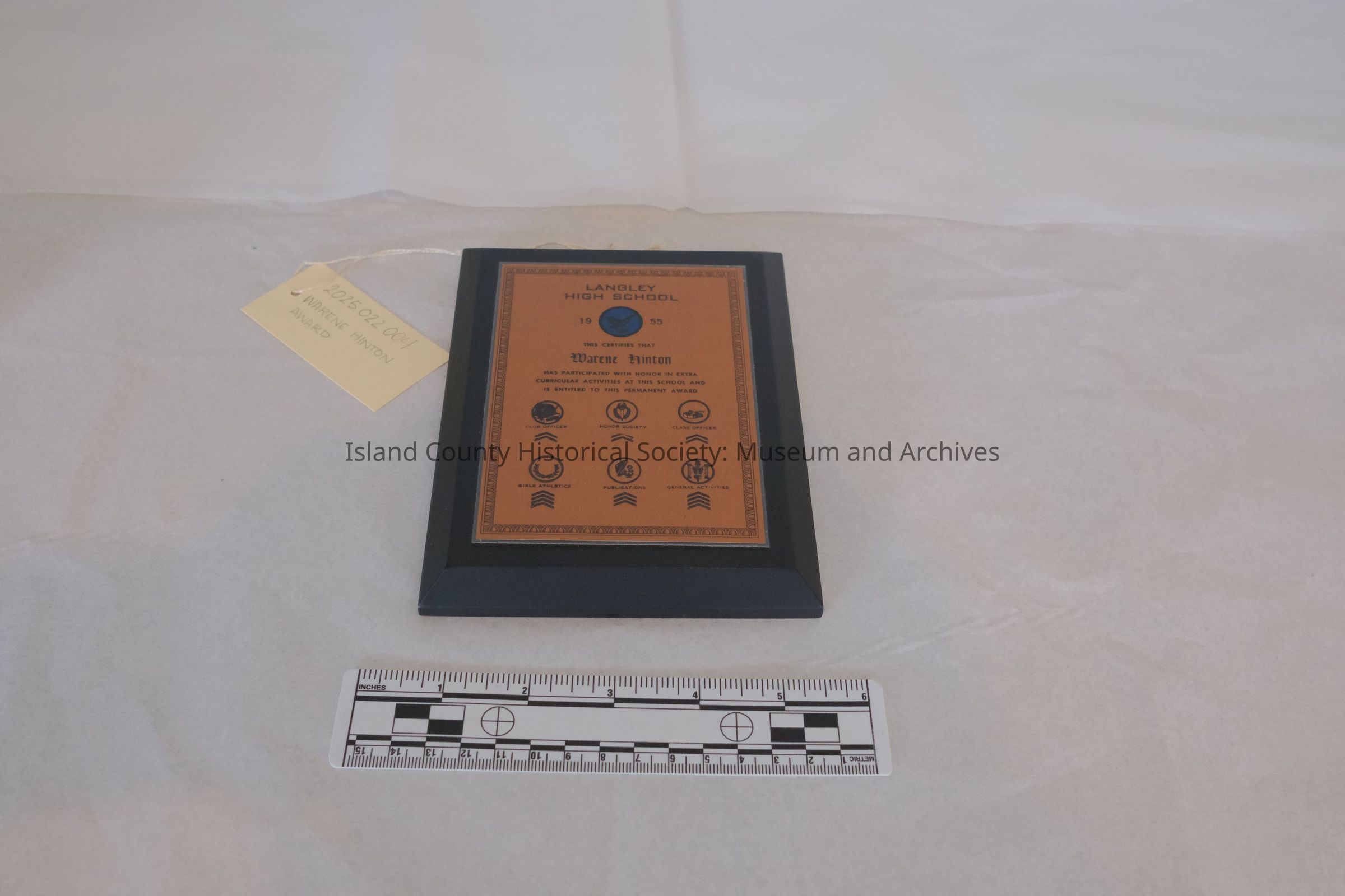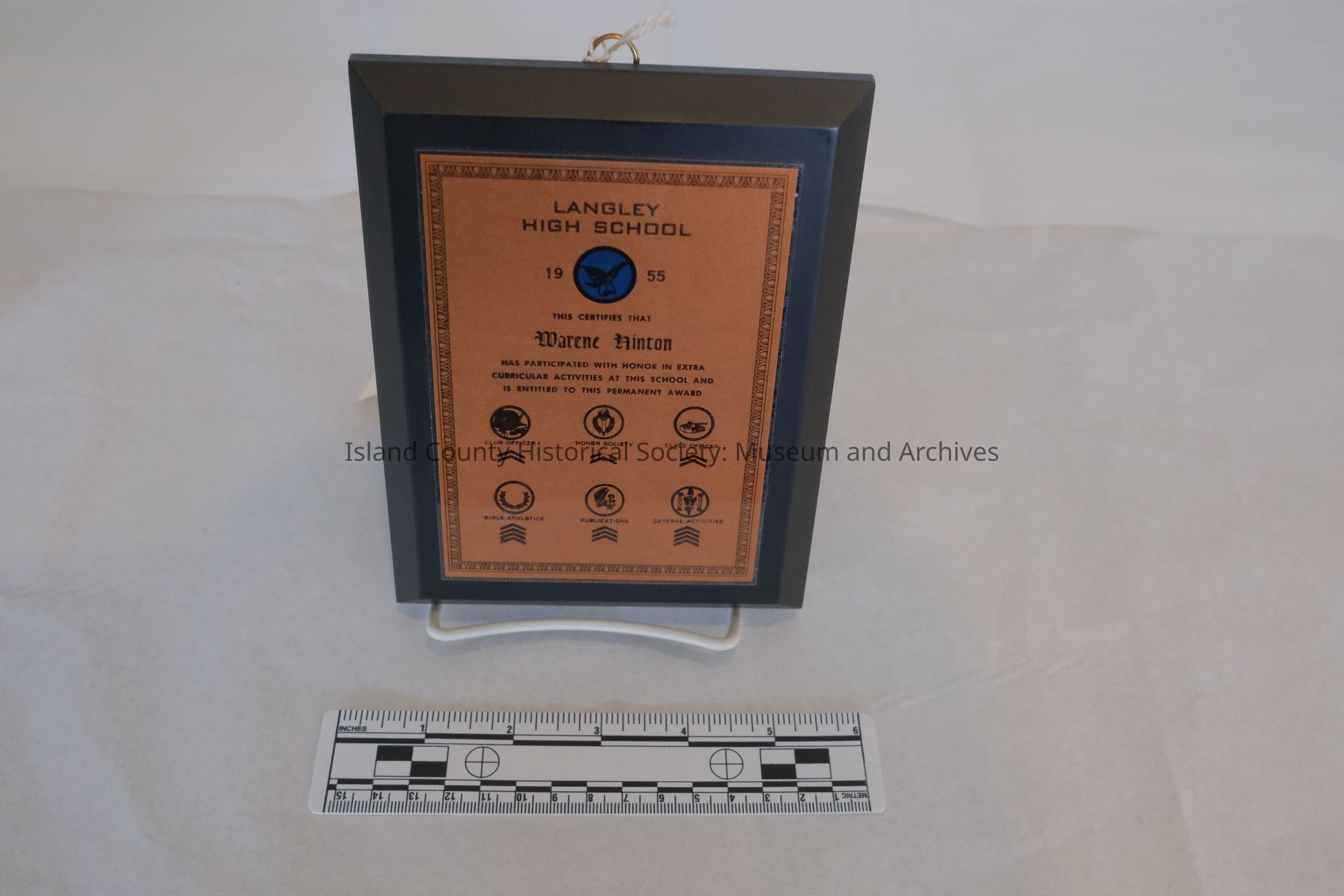 An award given to Warene Hinton for participating with honor in extracurricular activities at Langley High School