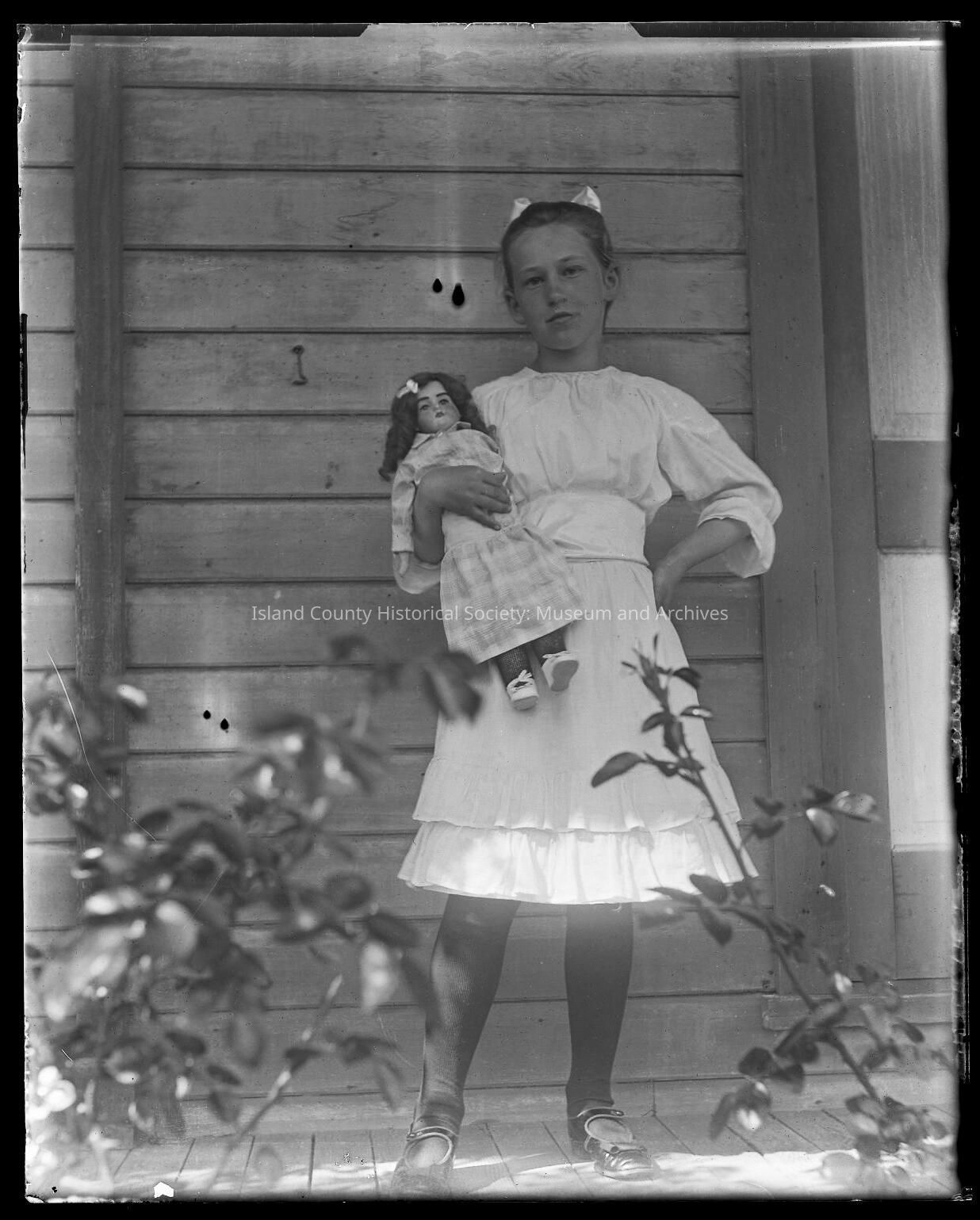 Young girl with doll on porchCollection