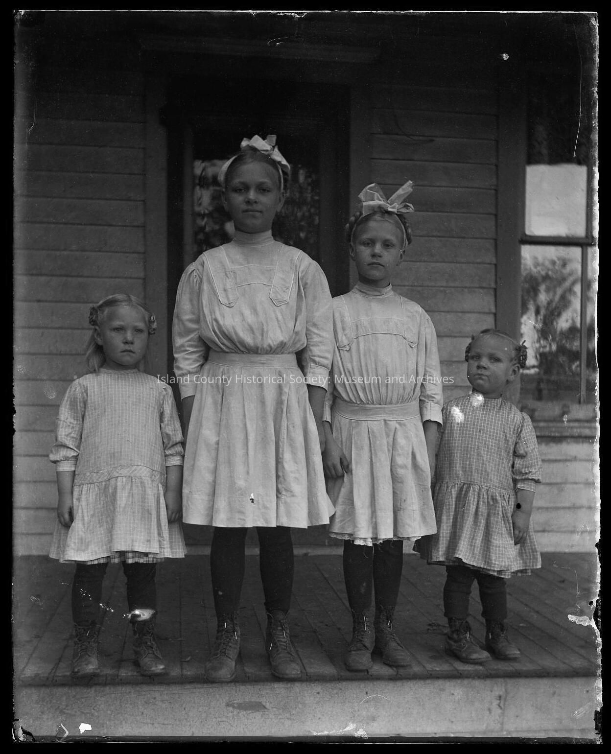 Four young girls posing on porchCollection