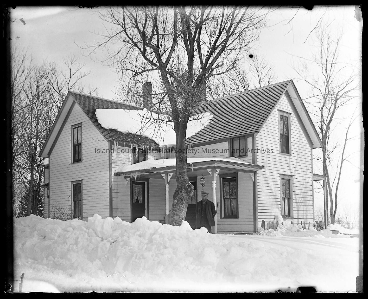 Winter scene, man outside houseCollection
