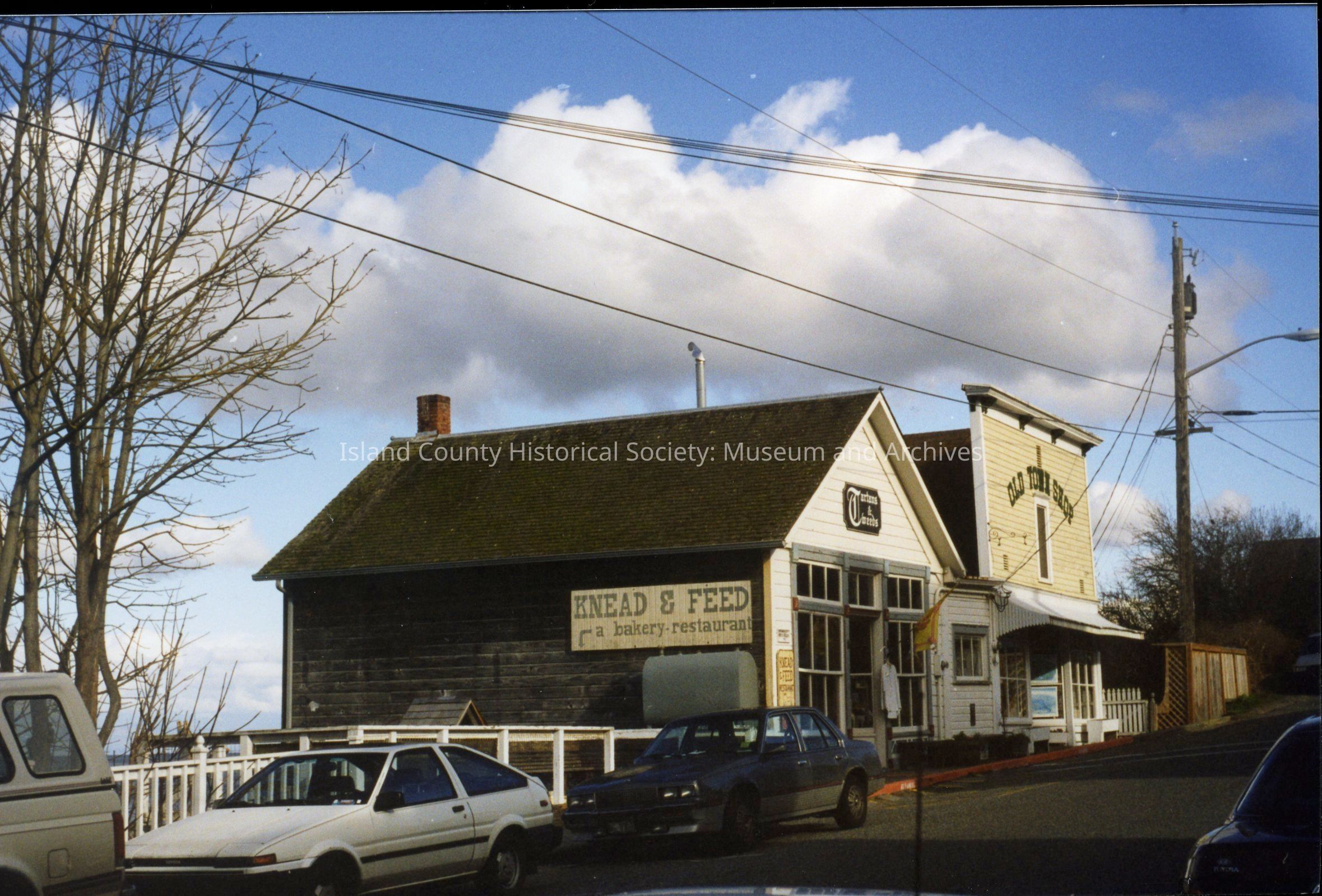 #4 (left) and #2 (right) NW Front Street, Coupeville, c. 1997-1998. #4 NW Front Street occupied at this time by Tartans & Tweed; Knead & Feed. #2 NW Front Street occupied by Old Town Shop.Photograph Details