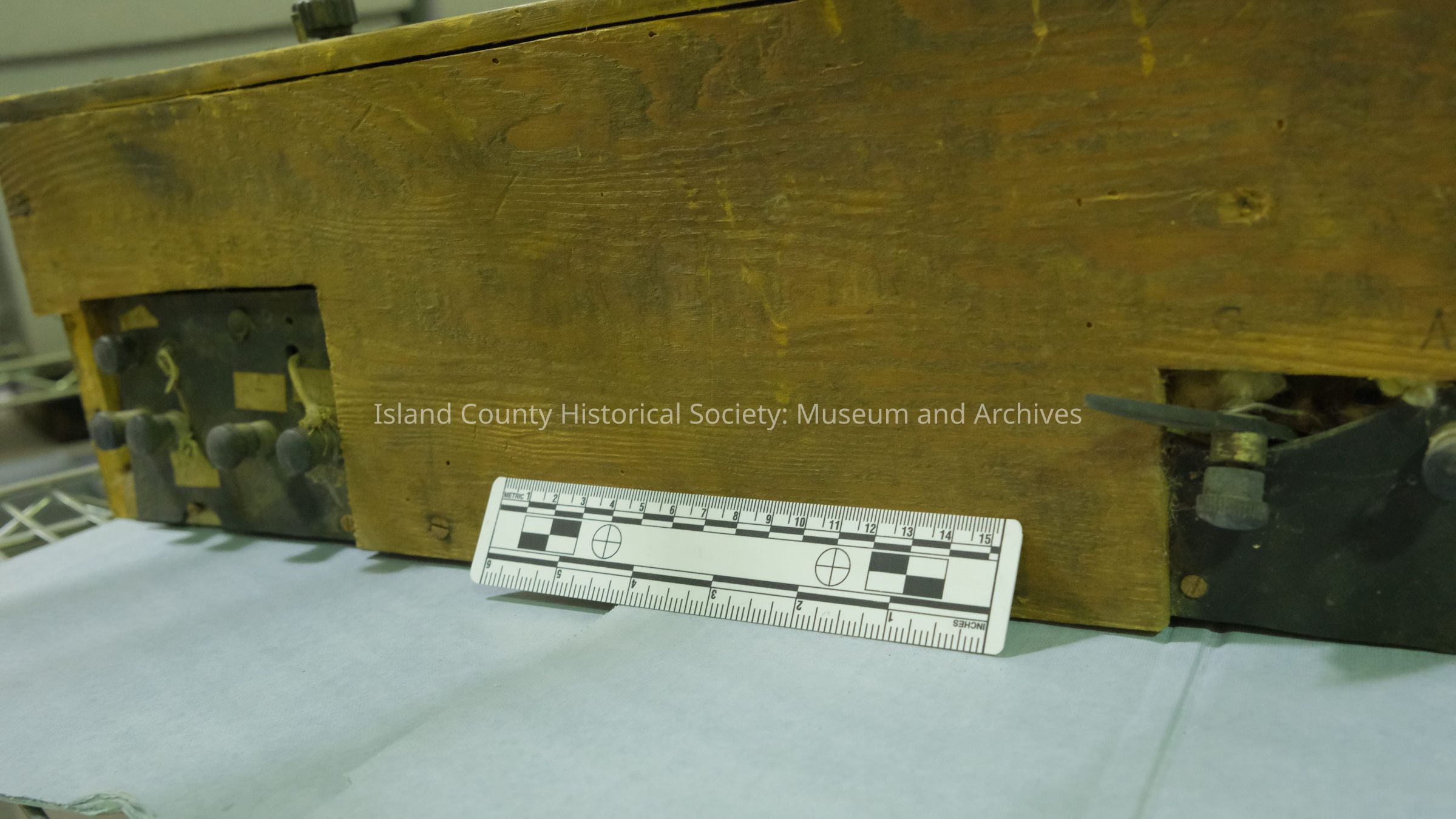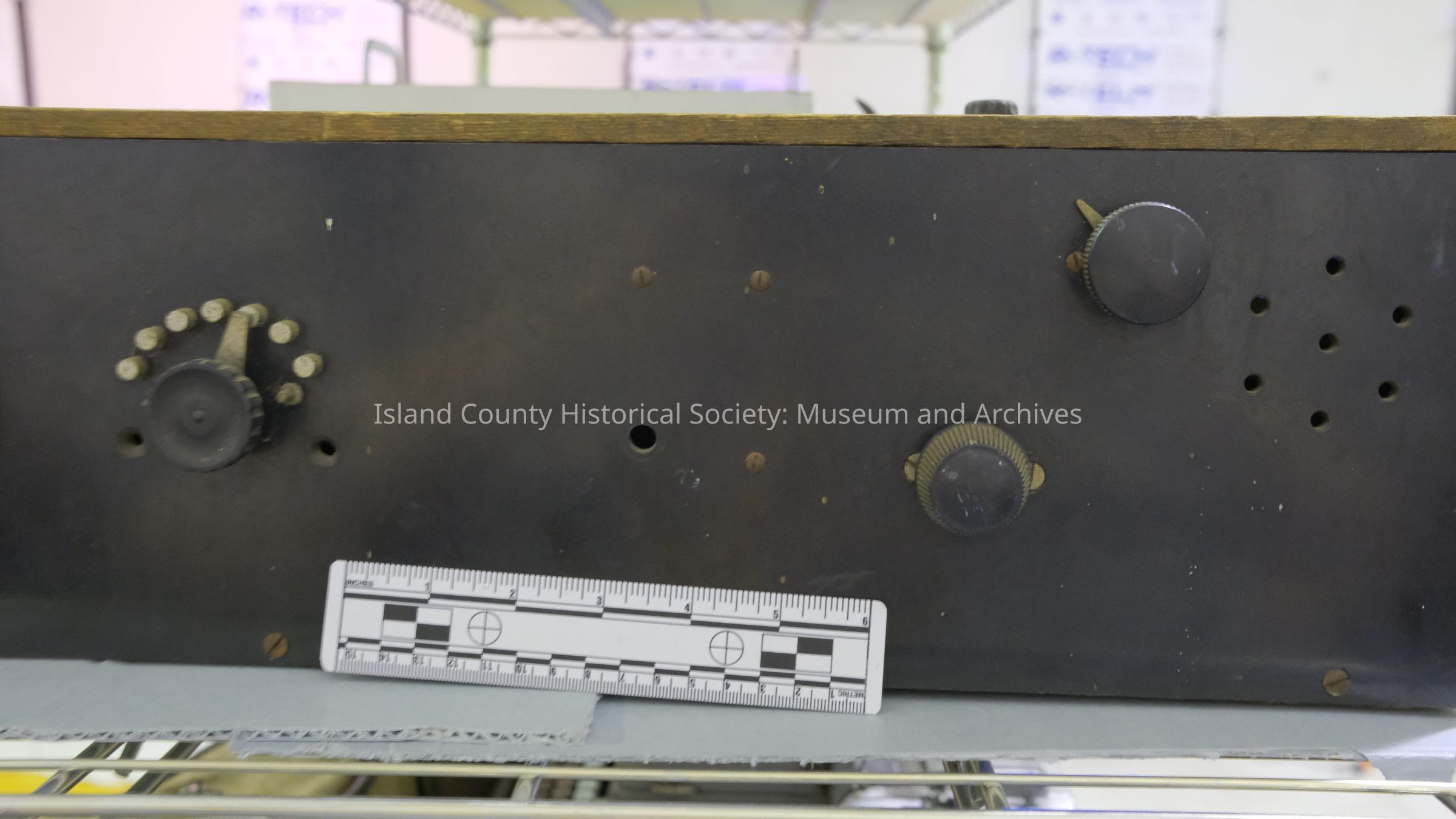 metal and wood box with three dials, no other identifying markers, except "Battery, B45" on back