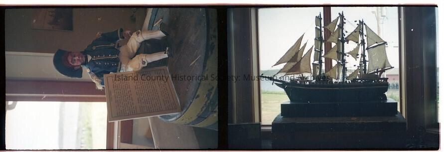 Written on the envelope: Exhibit negs, Lt Whidbey doll, ship, museum, Jolly Boat park, Coveland - courthouse.