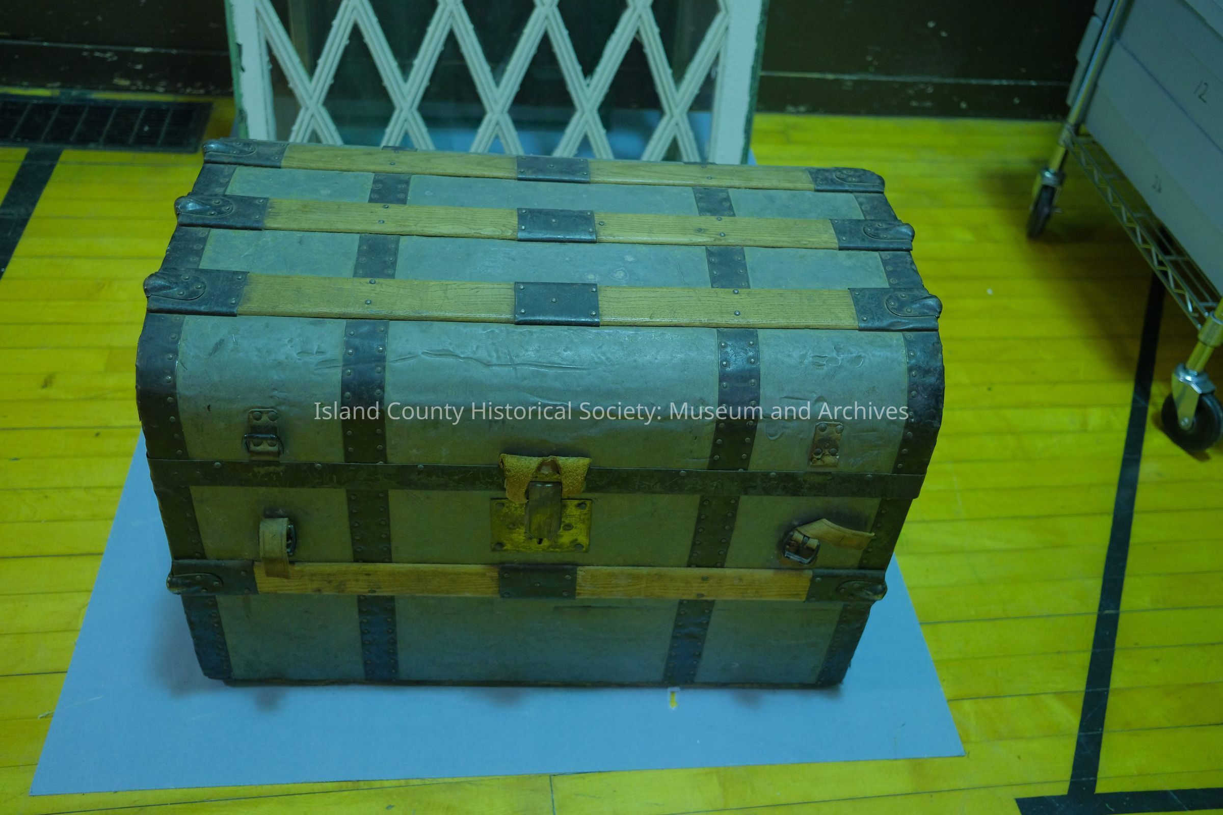 wood/metal steamer trunk, rounded top, removable insert for extra storage