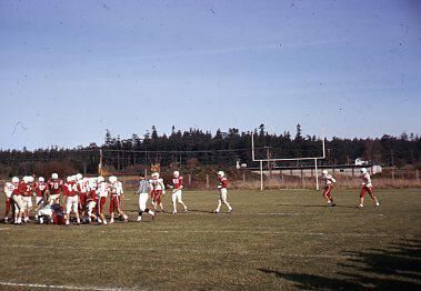 Writing on the slide states Homecoming Game. Date written on slide is 10/25/69. Area school is Coupeville. Color transparency slide.
