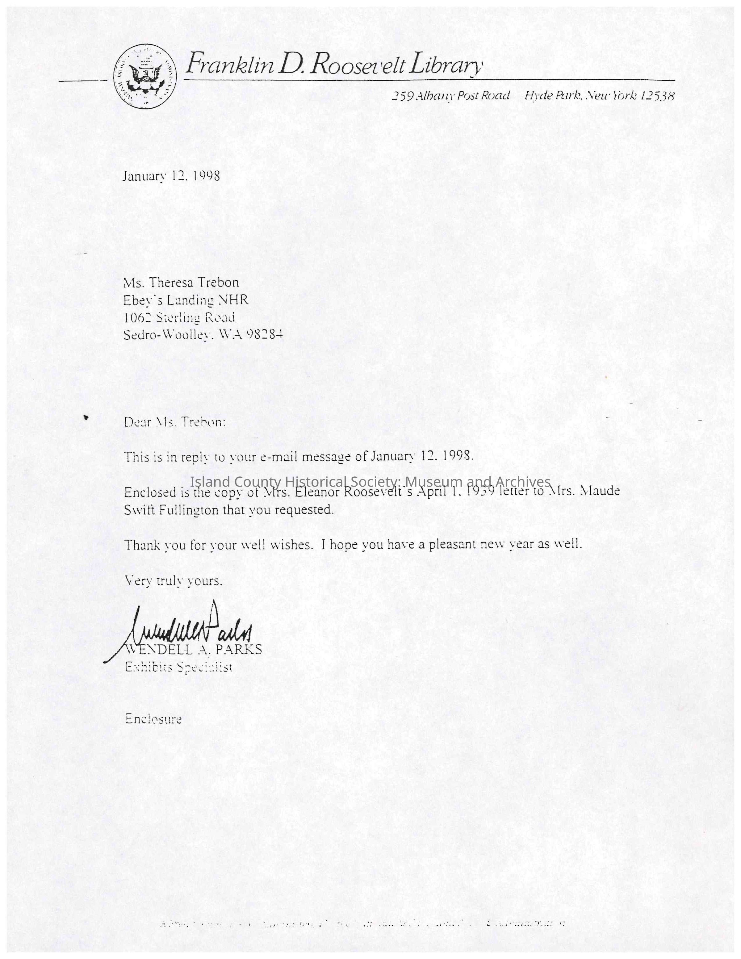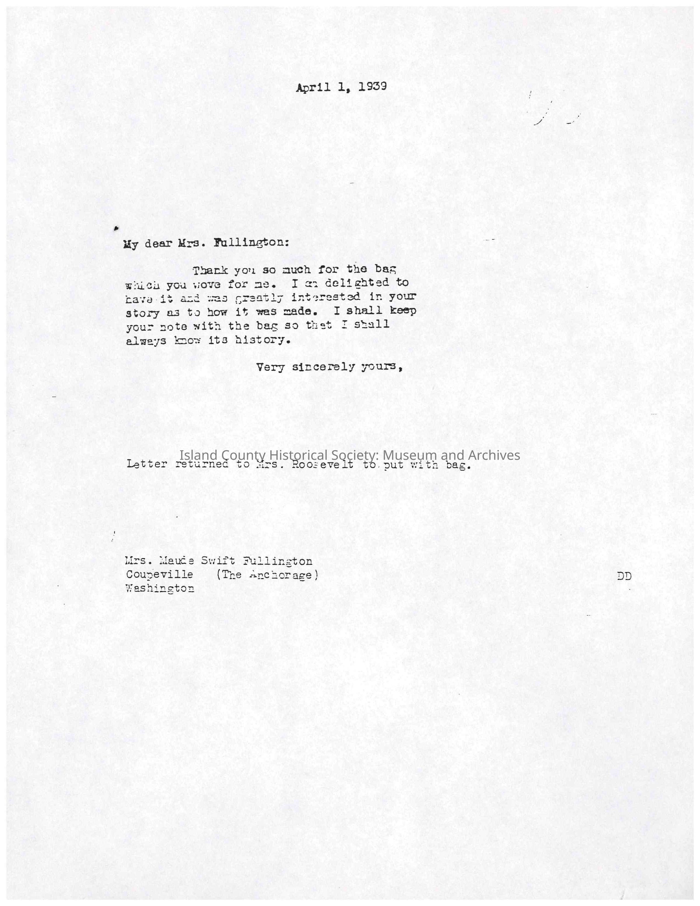 Eleanor Roosevelt to Maude Swift Fullington Communication