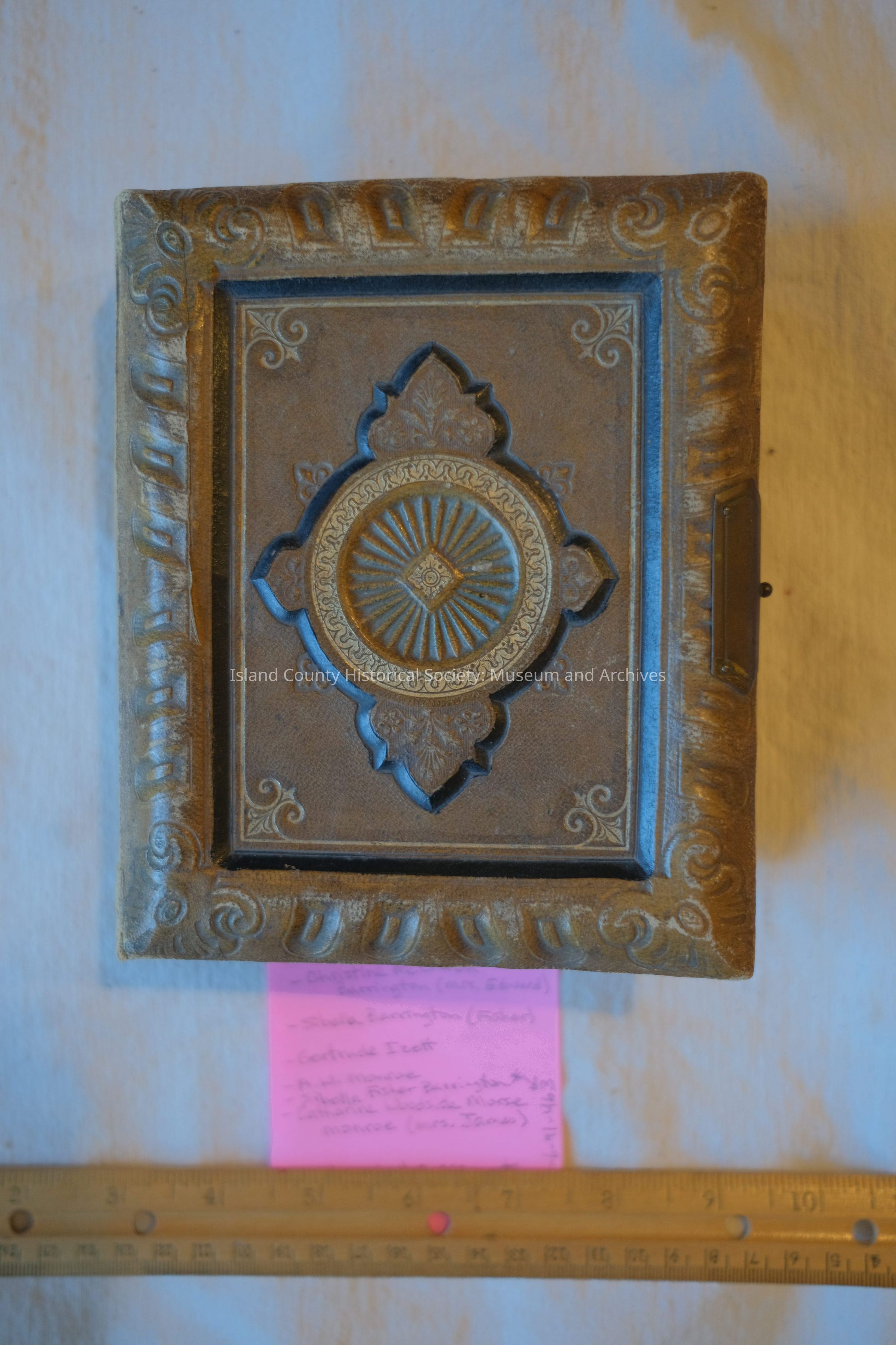 brown leather photo album - photos of Barrington - Izett - Monroe families of Oak Harbor - 1880s