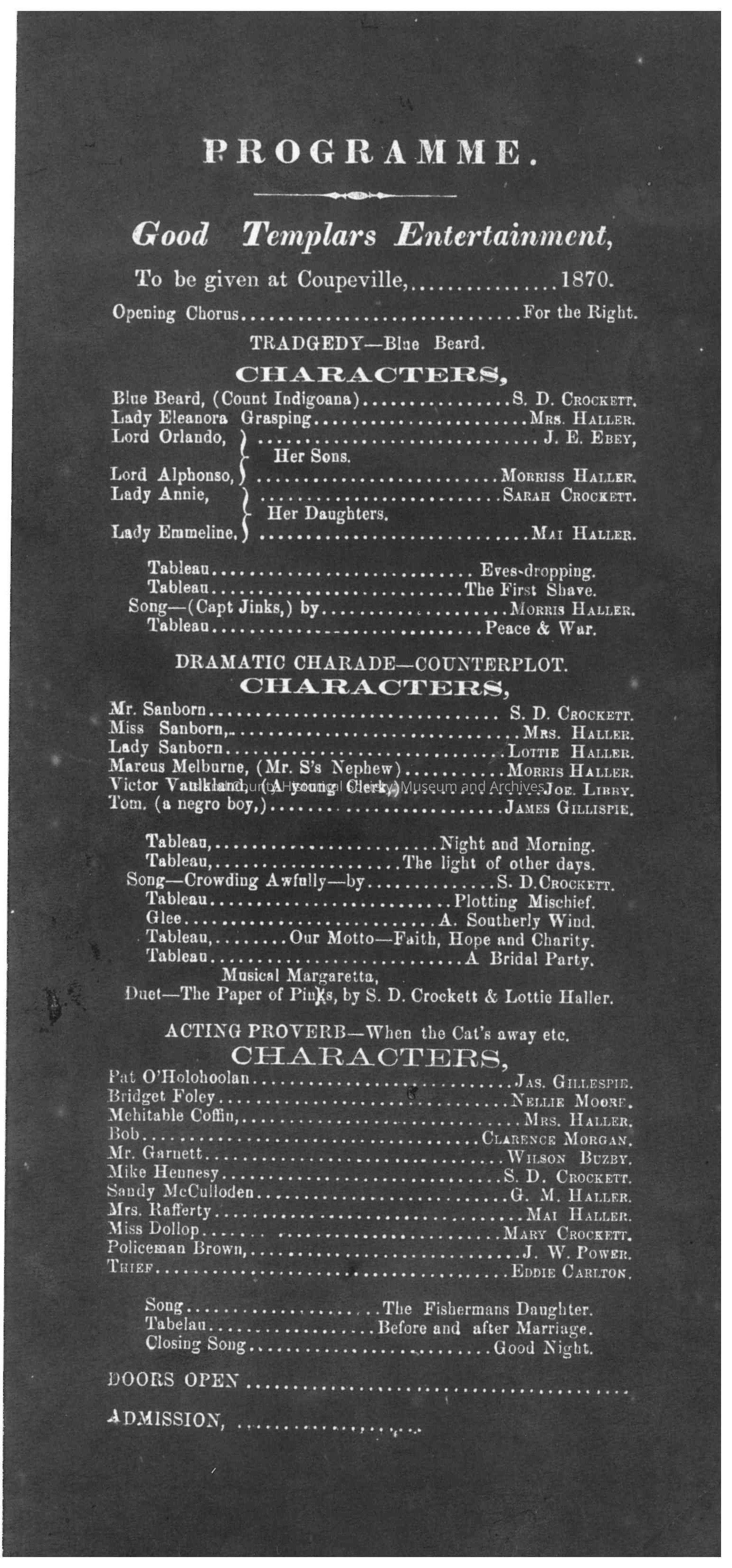 Coupeville Good Templars Entertainment Program