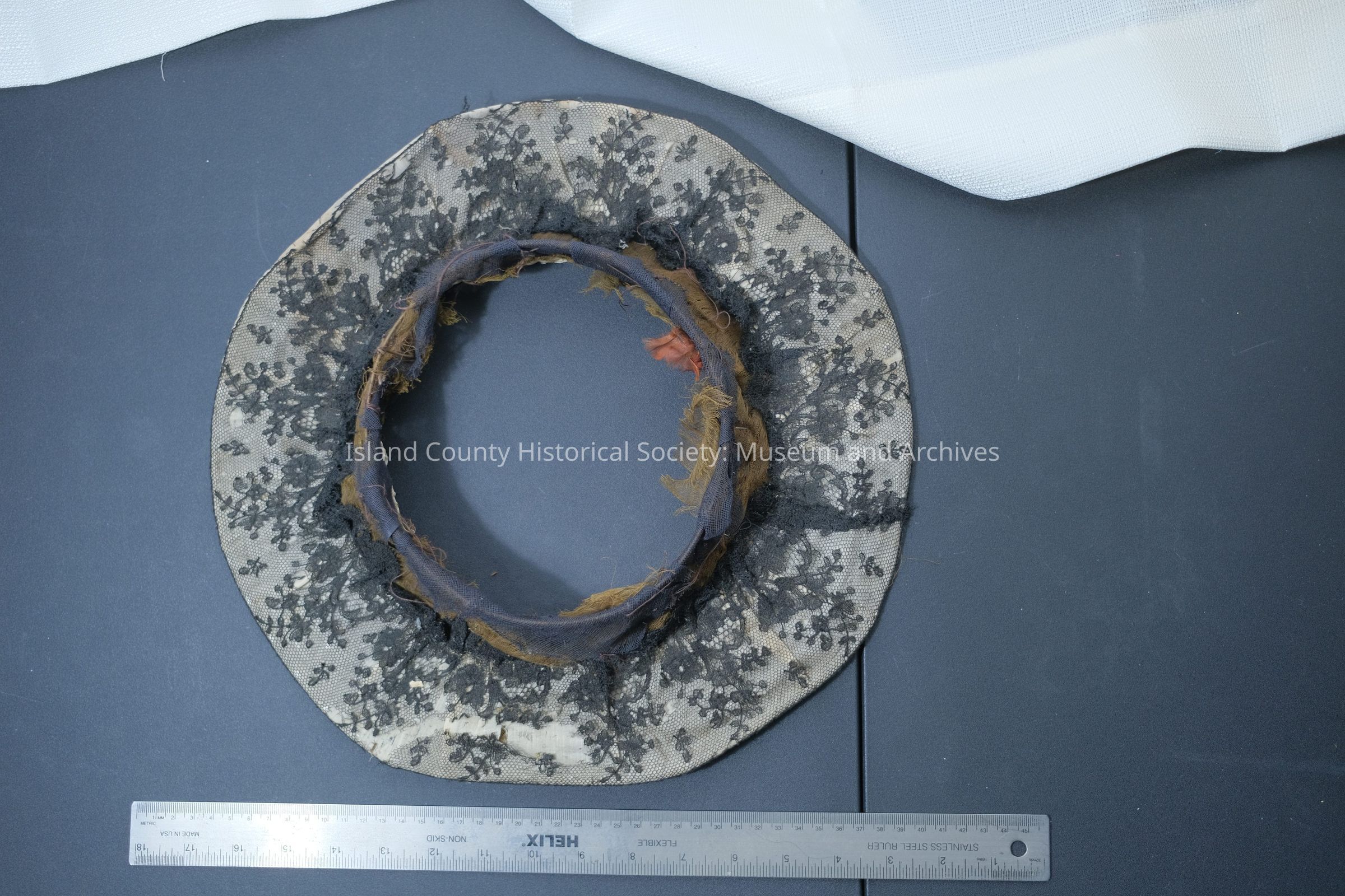 Homemade black lace hat/ no top; muslin underside