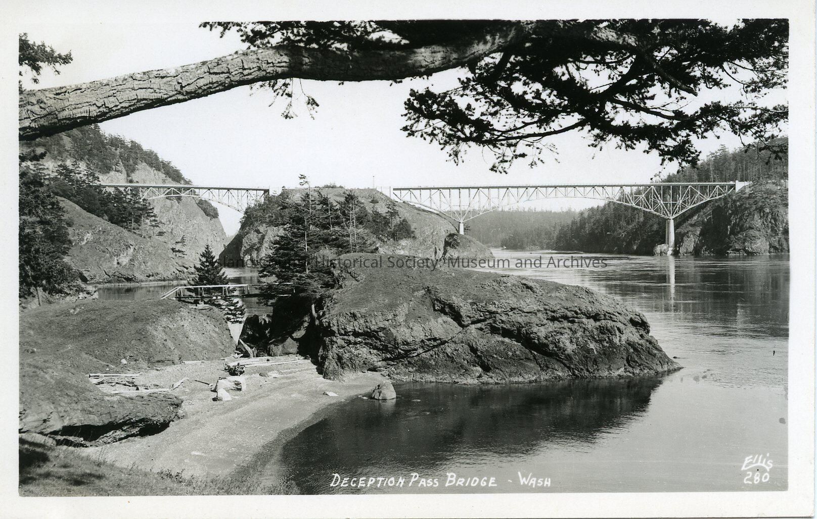 Postcard of Deception Pass bridges taken from Fidalgo Island. Caption: Deception Pass Bridge - Wash. Kodak postcard issued: 1950-present