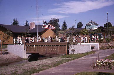 Writing on slide Brookhaven Dedication 7/24/69 raising the flag. Color transparency.