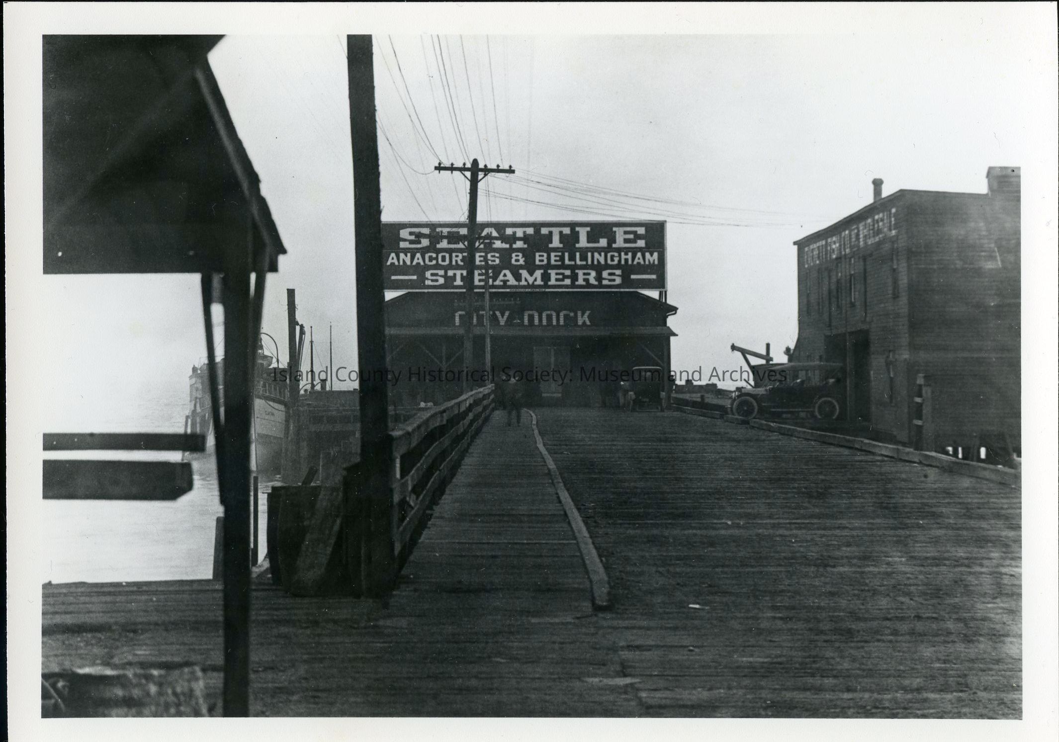 Photograph of the Everett City Dock, likely c. 1916. Photo from Everett Public Library. Handwritten note from Roger Sherman on reverse reads, "Everett Public Library said this was the Verona [the steamboat at the rear left of the photo] at the wharf. I think it is the Clatawa."Photograph Details