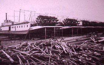 Photograph of scrap timber in a shipyard. Likely c. early 1900s.