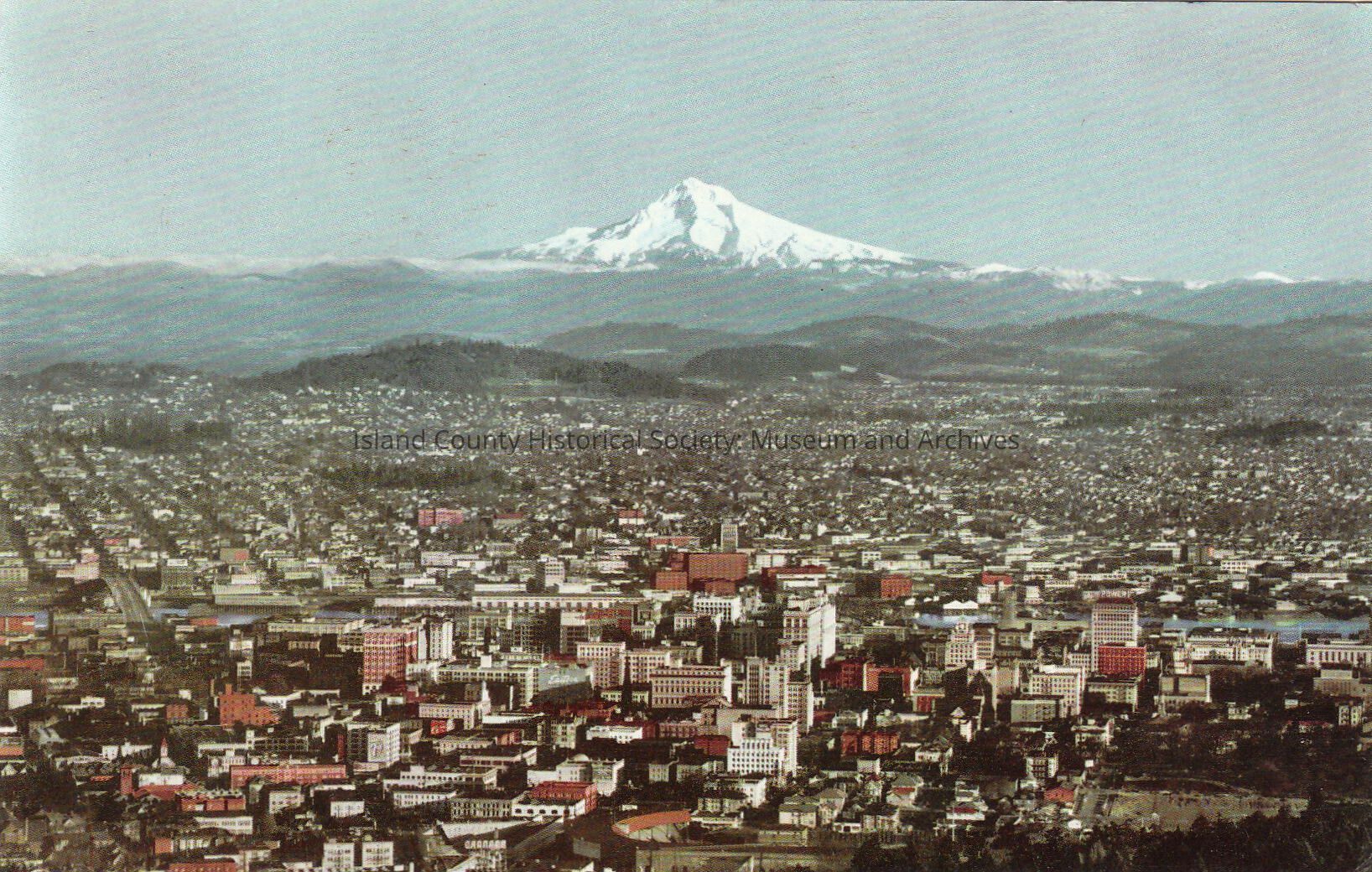 Portland with Mt Hood in the background. (x4) Union Oil Company Postcard